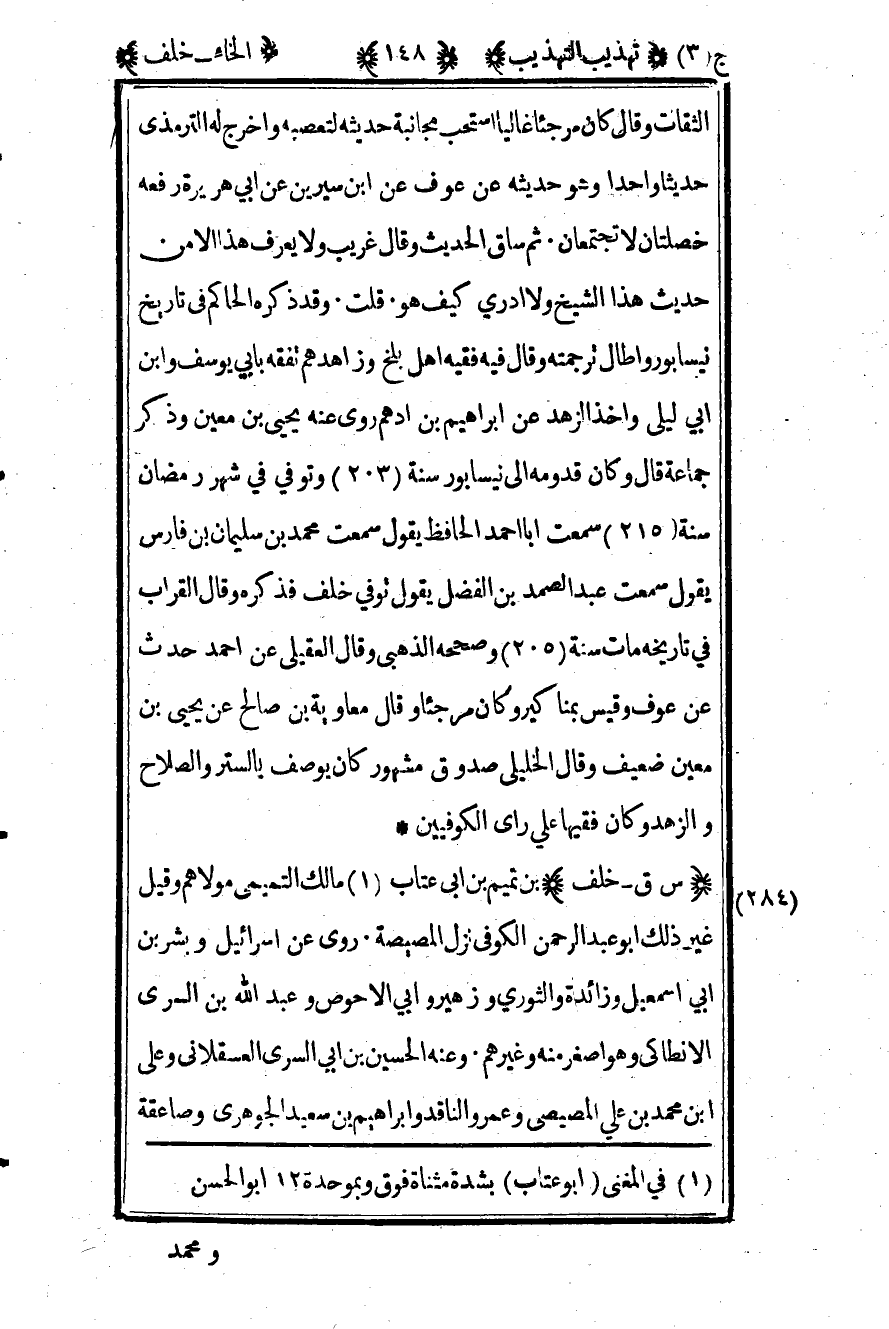 284- "س ق - خلف" بن تميم بن أبي عتاب1 مالك التميمي مولاهم وقيل غير ذلك أبو عبد الرحمن الكوفي نزل المصيصة روى عن إسرائيل وبشر بن أبي إسماعيل وزائدة والثوري وزهير وأبي الأحوص وعبد الله بن السري الأنطاكي وهو أصغر منه وغيرهم وعنه الحسين بن أبي السري العسقلاني وعلي بن محمد بن علي المصيصي وعمرو الناقد وإبراهيم بن سعيد الجوهري وصاعقة