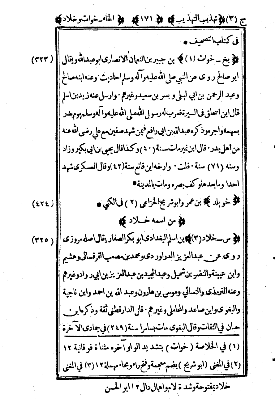 1 في المغني خلاد بمفتوحة وشدة لام وإهمال دال 12 أبو الحسن.