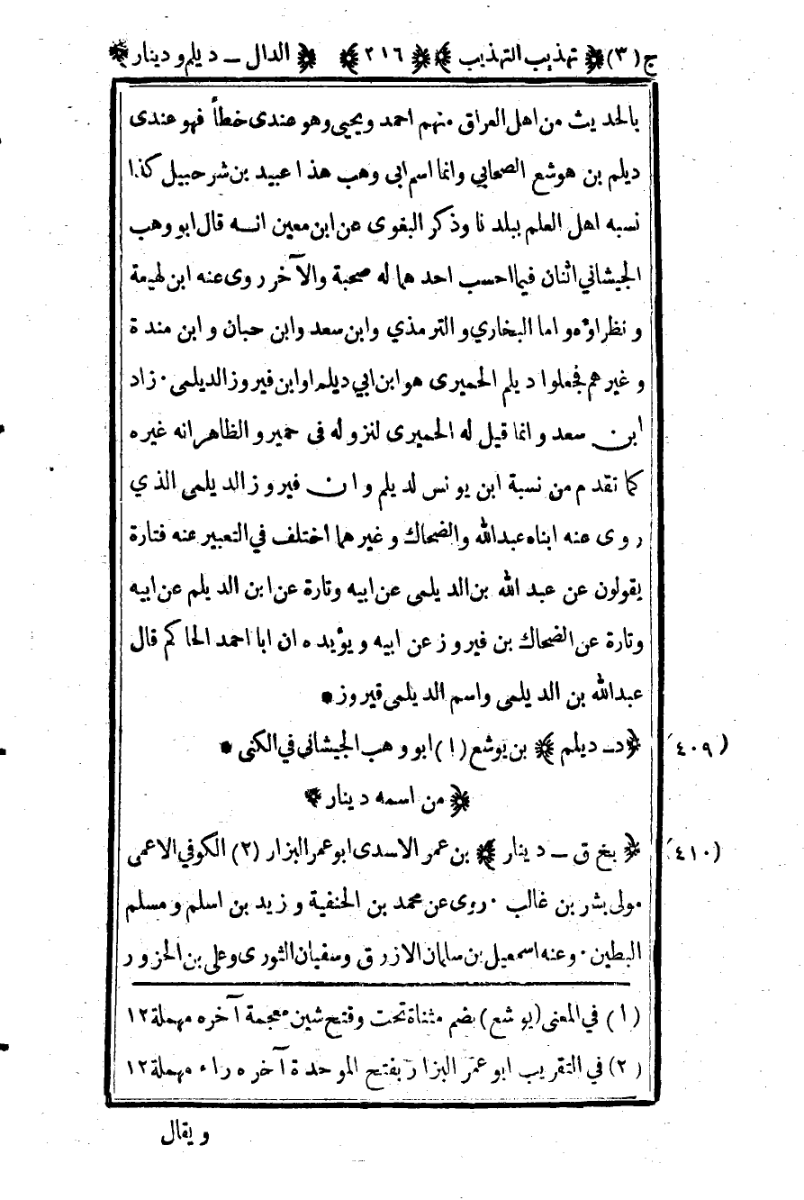 409- "د – ديلم" بن يوشع1 أبو وهب الجيشاني في الكنى.