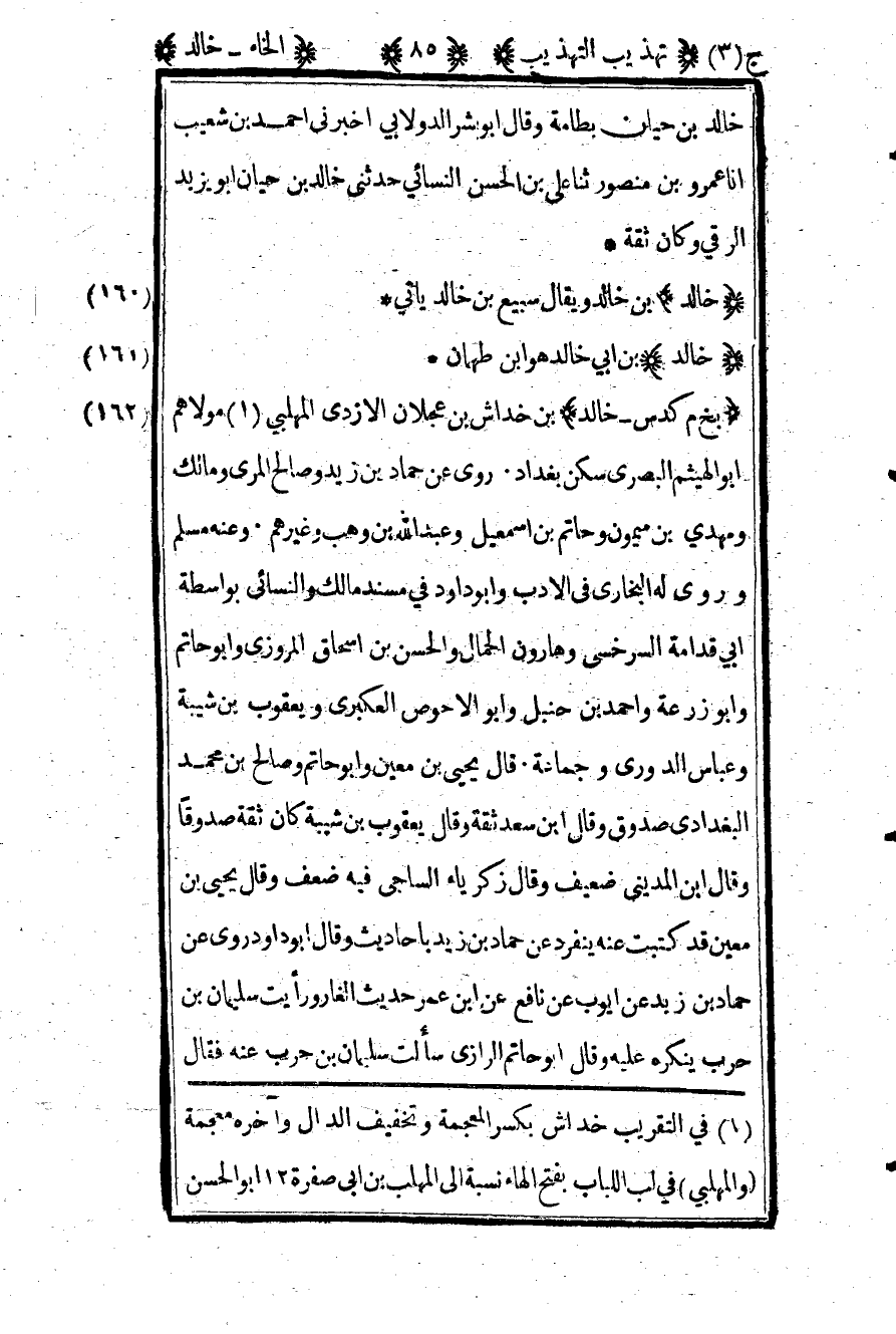 1 في التقريب خداش بكسر المعجمة وتخفيف الدال وآخره معجمة "والمهلبي" في لب اللباب بفتح الهاء نسبة إلى المهلب بن أبي صفرة 12 أبو الحسن.