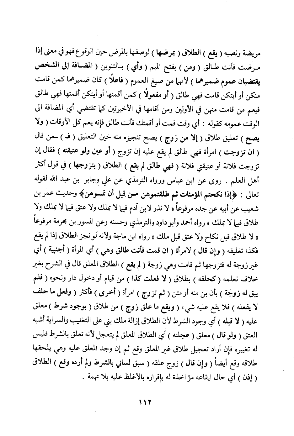(وَلَا يَصِحُّ) تَعْلِيقُ طَلَاقٍ (إلَّا مِنْ زَوْجٍ) يَصِحُّ تَنْجِيزُهُ مِنْهُ حِينَ التَّعْلِيقِ (فَ) مَنْ قَالَ (إنْ تَزَوَّجْتُ) امْرَأَةً فَهِيَ طَالِقٌ لَمْ يَقَعْ عَلَيْهِ إنْ تَزَوَّجَ (أَوْ عَيَّنَ وَلَوْ عَتِيقَتَهُ) فَقَالَ إنْ تَزَوَّجْت فُلَانَةَ أَوْ عَتِيقَتِي فُلَانَةَ (فَهِيَ طَالِقٌ لَمْ يَقَعْ) الطَّلَاقُ (بِتَزَوُّجِهَا) فِي قَوْلِ أَكْثَرِ أَهْلِ الْعِلْمِ. رُوِيَ عَنْ ابْنِ عَبَّاسٍ وَرَوَاهُ التِّرْمِذِيُّ عَنْ عَلِيٍّ وَجَابِرِ بْنِ عَبْدِ اللَّهِ لِقَوْلِهِ تَعَالَى: {إذَا نَكَحْتُمْ الْمُؤْمِنَاتِ ثُمَّ طَلَّقْتُمُوهُنَّ مِنْ قَبْلِ أَنْ تَمَسُّوهُنَّ} [الأحزاب: ٤٩] وَحَدِيثِ عُمَرَ بْنِ شُعَيْبٍ عَنْ أَبِيهِ عَنْ جَدِّهِ مَرْفُوعًا «لَا نَذْرَ لِابْنِ آدَمَ فِيمَا لَا يَمْلِكُ وَلَا عِتْقَ فِيمَا لَا يَمْلِكُ وَلَا طَلَاقَ فِيمَا لَا يَمْلِكُ» رَوَاهُ أَحْمَدُ وَأَبُو دَاوُد وَالتِّرْمِذِيُّ وَحَسَّنَهُ.