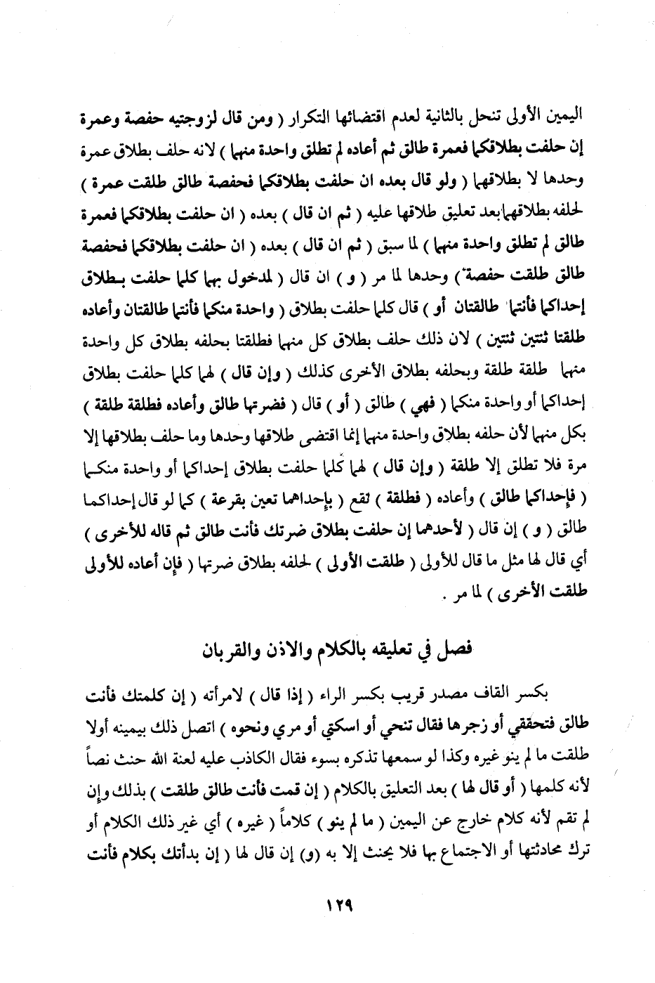 [فَصْلٌ فِي تَعْلِيقِهِ بِالْكَلَامِ وَالْإِذْنِ وَالْقُرْبَانِ أَيْ الطَّلَاقِ]