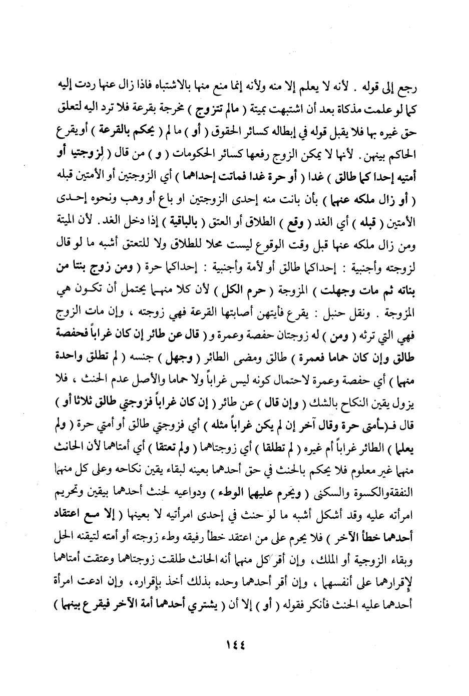 رُجِعَ إلَى قَوْلِهِ ; لِأَنَّهُ لَا يُعْلَمُ إلَّا مِنْهُ وَلِأَنَّهُ إنَّمَا مُنِعَ مِنْهَا بِالِاشْتِبَاهِ فَإِذَا زَالَ عَنْهَا رُدَّتْ إلَيْهِ كَمَا لَوْ عَلِمَتْ مُذَكَّاةً بَعْدَ أَنْ اشْتَبَهَتْ بِمَيْتَةٍ (مَا لَمْ تَتَزَوَّجْ) مُخْرَجَةٌ بِقُرْعَةٍ فَلَا تُرَدُّ لِتَعَلُّقِ حَقِّ غَيْرِهِ بِهَا فَلَا يُقْبَلُ قَوْلُهُ فِي إبْطَالِهِ كَسَائِرِ الْحُقُوقِ (أَوْ) مَا لَمْ (يُحْكَمْ بِالْقُرْعَةِ) أَوْ يُقْرِعُ الْحَاكِمُ بَيْنَهُنَّ ; لِأَنَّهَا لَا يُمْكِنُ الزَّوْجُ رَفْعَهَا كَسَائِرِ الْحُكُومَاتِ.