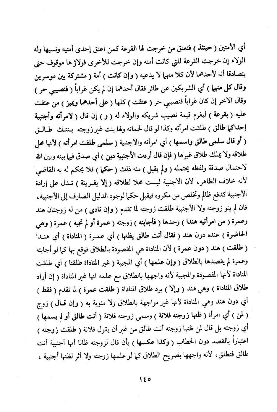 (وَإِنْ نَادَى) مَنْ لَهُ زَوْجَتَانِ هِنْدٌ وَعَمْرَةُ (مِنْ امْرَأَتَيْهِ هِنْدًا) وَحْدَهَا (فَأَجَابَتْهُ) زَوْجَتُهُ (عَمْرَةُ أَوْ لَمْ تُجِبْهُ) عَمْرَةُ (وَهِيَ الْحَاضِرَةُ) عِنْدَهُ دُونَ هِنْدٍ (فَقَالَ أَنْتِ طَالِقٌ يَظُنُّهَا) أَيْ عَمْرَةَ (الْمُنَادَاةَ) أَيْ هِنْدًا (طَلُقَتْ) هِنْدُ (دُونَ عَمْرَةَ) لِأَنَّ الْمُنَادَاةَ هِيَ الْمَقْصُودَةُ بِالطَّلَاقِ فَوَقَعَ بِهَا كَمَا لَوْ أَجَابَتْهُ وَعَمْرَةُ لَمْ يَقْصِدْهَا بِالطَّلَاقِ (وَإِنْ عَلِمَهَا) أَيْ الْمُجِيبَةَ (غَيْرَ الْمُنَادَاةِ طَلُقَتَا) أَيْ طَلُقَتْ الْمُنَادَاةُ لِأَنَّهَا الْمَقْصُودَةُ وَالْمُجِيبَةُ لِأَنَّهُ وَاجَهَهَا بِالطَّلَاقِ مَعَ عِلْمِهِ أَنَّهَا غَيْرُ الْمُنَادَاةِ (إنْ أَرَادَ طَلَاقَ الْمُنَادَاةِ) وَهِيَ هِنْدُ (وَإِلَّا) يُرِدْ طَلَاقَ الْمُنَادَاةِ (طَلُقَتْ عَمْرَةُ) لِمَا تَقَدَّمَ (فَقَطْ) أَيْ دُونَ هِنْدٍ وَهِيَ الْمُنَادَاةُ لِأَنَّهَا غَيْرُ مُوَاجَهَةٍ بِالطَّلَاقِ وَلَا مَنْوِيَّةٌ بِهِ.