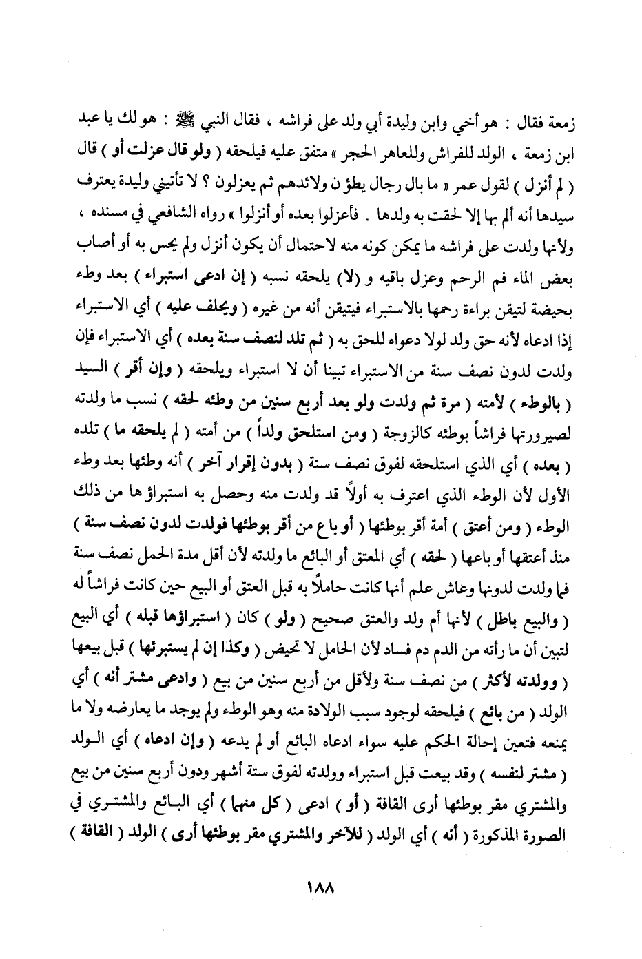 زَمْعَةَ فَقَالَ: هُوَ أَخِي وَابْنُ وَلِيدَةِ أَبِي وُلِدَ عَلَى فِرَاشِهِ، فَقَالَ النَّبِيُّ صَلَّى اللَّهُ عَلَيْهِ وَسَلَّمَ «: هُوَ لَكَ يَا عَبْدَ اللَّهِ بْنَ زَمْعَةَ، الْوَلَدُ لِلْفِرَاشِ وَلِلْعَاهِرِ الْحَجَرُ» " مُتَّفَقٌ عَلَيْهِ فَيَلْحَقُهُ. (وَلَوْ قَالَ عَزَلْتُ أَوْ) قَالَ (لَمْ أُنْزِلْ) لِقَوْلِ عُمَرَ " مَا بَالُ رِجَالٍ يَطَؤُنَ وَلَائِدَهُمْ ثُمَّ يَعْزِلُونَ؟ لَا تَأْتِينِي وَلِيدَةٌ يَعْتَرِفُ سَيِّدُهَا أَنَّهُ أَلَمَّ بِهَا إلَّا أَلْحَقْتُ بِهِ وَلَدَهَا فَاعْزِلُوا بَعْدَهُ أَوْ أَنْزَلُوا. " رَوَاهُ الشَّافِعِيُّ فِي مُسْنَدِهِ، وَلِأَنَّهَا وَلَدَتْ عَلَى فِرَاشِهِ مَا يُمْكِنُ كَوْنُهُ مِنْهُ لِاحْتِمَالِ أَنْ يَكُونَ أَنْزَلَ وَلَمْ يُحِسَّ بِهِ أَوْ أَصَابَ بَعْضُ الْمَاءِ فَمَ الرَّحِمِ وَعَزَلَ بَاقِيَهُ وَ (لَا) يَلْحَقُهُ نَسَبُهُ (إنْ ادَّعَى اسْتِبْرَاءً) بَعْدَ وَطْءٍ بِحَيْضَةٍ لِتَيَقُّنِ بَرَاءَةِ رَحِمِهَا بِالِاسْتِبْرَاءِ فَيُتَيَقَّنُ أَنَّهُ مِنْ غَيْرِهِ (وَيَحْلِفُ عَلَيْهِ) أَيْ الِاسْتِبْرَاءِ إذَا ادَّعَاهُ ; لِأَنَّهُ حَقُّ وَلَدٍ لَوْلَا دَعْوَاهُ لَلَحِقَ بِهِ (ثُمَّ تَلِدُ لِنِصْفِ سَنَةٍ بَعْدَهُ) أَيْ الِاسْتِبْرَاءِ فَإِنْ وَلَدَتْ لِدُونِ نِصْفِ سَنَةٍ مِنْ الِاسْتِبْرَاءِ تَبَيَّنَّا أَنْ لَا اسْتِبْرَاءَ وَيَلْحَقُهُ.