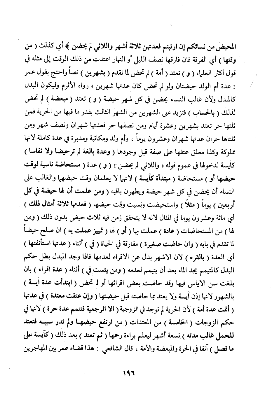 (الْخَامِسَةُ) مِنْ الْمُعْتَدَّاتِ (مَنْ ارْتَفَعَ حَيْضُهَا وَلَمْ تَدْرِ سَبَبَهُ فَتَعْتَدُّ لِلْحَمْلِ غَالِبَ مُدَّتِهِ) تِسْعَةَ أَشْهُرٍ لِيُعْلَمَ بَرَاءَةُ رَحِمِهَا (ثُمَّ تَعْتَدُّ) بَعْدَ ذَلِكَ (كَآيِسَةٍ عَلَى مَا فُصِّلَ) آنِفًا فِي الْحُرَّةِ وَالْمُبَعَّضَةِ وَالْأَمَةِ، قَالَ الشَّافِعِيُّ: هَذَا قَضَاءُ عُمَرَ بَيْنَ الْمُهَاجِرِينَ