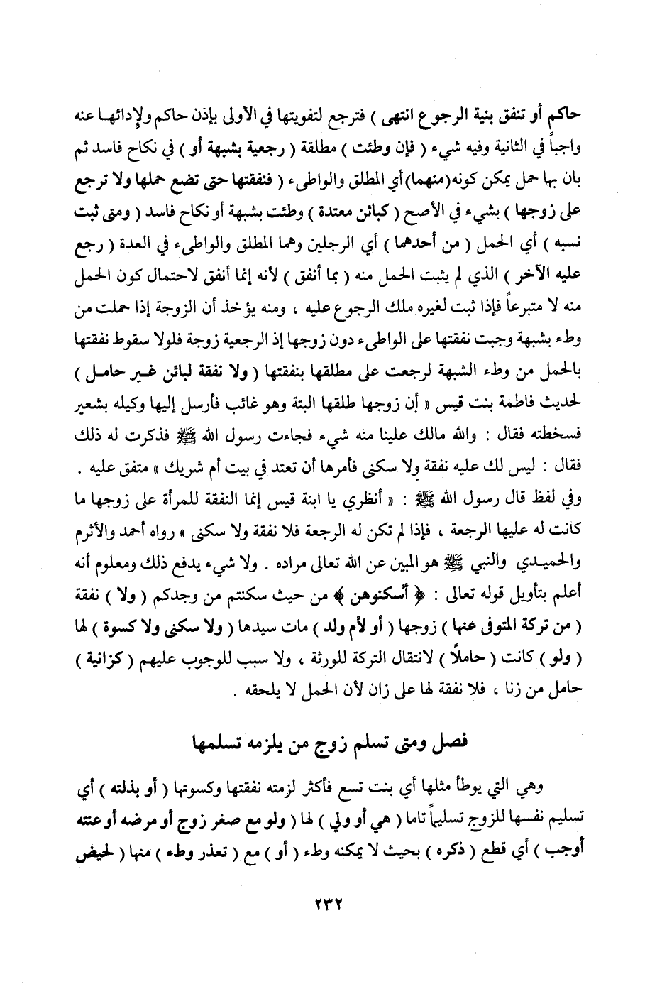 حَاكِمٍ أَوْ تُنْفِقْ بِنِيَّةِ الرُّجُوعِ انْتَهَى) فَتَرْجِعُ لِتَفْوِيتِهَا فِي الْأُولَى بِإِذْنِ حَاكِمٍ وَلِأَدَائِهَا عَنْهُ وَاجِبًا فِي الثَّانِيَة وَفِيهِ شَيْءٌ (فَإِنْ وُطِئَتْ) مُطَلَّقَةٌ (رَجْعِيَّةٌ بِشُبْهَةٍ أَوْ) فِي نِكَاحٍ فَاسِدٍ ثُمَّ بَانَ بِهَا حَمْلٌ يُمْكِنُ كَوْنُهُ (مِنْهُمَا) أَيْ الْمُطَلِّقِ وَالْوَاطِئِ (فَنَفَقَتُهَا حَتَّى تَضَعَ حَمَلَهَا، وَلَا تَرْجِعُ عَلَى زَوْجِهَا) بِشَيْءٍ فِي الْأَصَحِّ (كَبَائِنٍ مُعْتَدَّةٍ) وُطِئَتْ بِشُبْهَةٍ أَوْ نِكَاحٍ فَاسِدٍ.