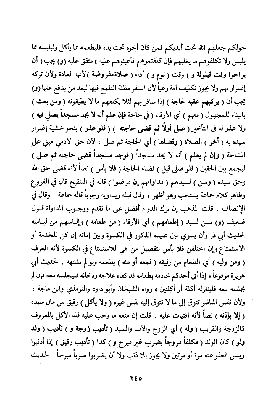 «خَوَلُكُمْ جَعَلَهُمْ اللَّهُ تَحْتَ أَيْدِيكُمْ فَمَنْ كَانَ أَخُوهُ تَحْتَ يَدِهِ فَلْيُطْعِمْهُ مِمَّا يَأْكُلُ وَلْيُلْبِسْهُ مِمَّا يَلْبَسُ وَلَا تُكَلِّفُوهُمْ مَا يَغْلِبُهُمْ فَإِنْ كَلَّفْتُمُوهُمْ فَأَعِينُوهُمْ عَلَيْهِ» " مُتَّفَقٌ عَلَيْهِ.