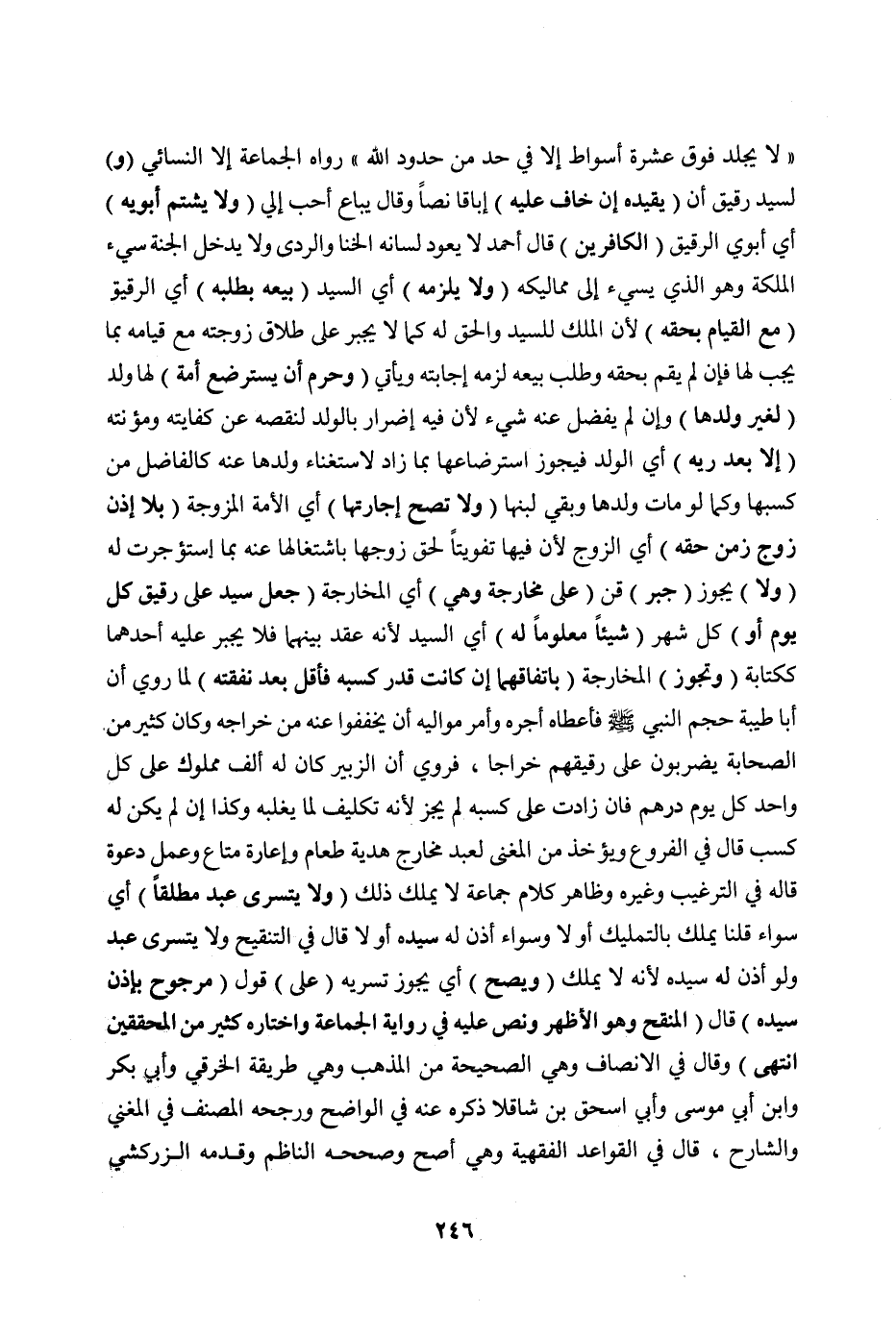 «لَا يُجْلَدُ فَوْقَ عَشَرَةِ أَسْوَاطٍ إلَّا فِي حَدٍّ مِنْ حُدُودِ اللَّهِ» " رَوَاهُ الْجَمَاعَةُ إلَّا النَّسَائِيّ (وَ) لِسَيِّدِ رَقِيقٍ أَنْ (يُقَيِّدَهُ إنْ خَافَ عَلَيْهِ) إبَاقًا نَصًّا وَقَالَ يُبَاعُ أَحَبُّ إلَيَّ (وَلَا يَشْتُمُ أَبَوَيْهِ) أَيْ أَبَوَيْ الرَّقِيقِ (الْكَافِرِينَ) قَالَ أَحْمَدُ لَا يُعَوِّدُ لِسَانَهُ الْخَنَا وَالرَّدَى وَلَا يَدْخُلُ الْجَنَّةَ سَيِّئُ الْمَلَكَةِ وَهُوَ الَّذِي يُسِيءُ إلَى مَمَالِيكِهِ
