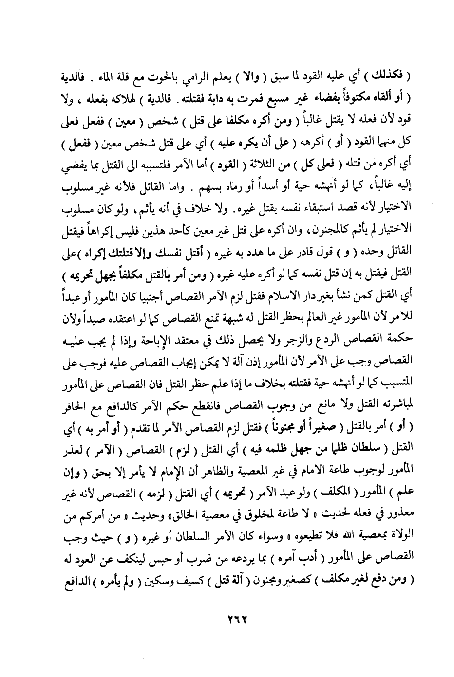 (وَمَنْ أَمَرَ بِالْقَتْلِ مُكَلَّفًا يَجْهَلُ تَحْرِيمَهُ) أَيْ الْقَتْلِ كَمَنْ نَشَأَ بِغَيْرِ دَارِ الْإِسْلَامِ فَقَتَلَ لَزِمَ الْآمِرُ الْقِصَاصَ أَجْنَبِيًّا كَانَ الْمَأْمُورُ أَوْ عَبْدًا لِلْآمِرِ ; لِأَنَّ الْمَأْمُورَ غَيْرَ الْعَالِمِ بِحَظْرِ الْقَتْلِ لَهُ شُبْهَةٌ تَمْنَعُ الْقِصَاصَ كَمَا لَوْ اعْتَقَدَهُ صَيْدًا وَلِأَنَّ حِكْمَةَ الْقِصَاصِ الرَّدْعُ وَالزَّجْرُ وَلَا يَحْصُلُ ذَلِكَ فِي مُعْتَقِدِ الْإِبَاحَةِ، وَإِذَا لَمْ يَجِبْ عَلَيْهِ الْقِصَاصُ وَجَبَ عَلَى الْآمِرِ ; لِأَنَّ الْمَأْمُورَ إذَنْ آلَةٌ لَا يُمْكِنُ إيجَابُ الْقِصَاصِ عَلَيْهِ فَوَجَبَ عَلَى الْمُتَسَبِّبِ كَمَا لَوْ أَنْهَشَهُ حَيَّةً فَقَتَلَتْهُ بِخِلَافِ مَا إذَا عَلِمَ حَظْرَ الْقَتْلِ فَإِنَّ الْقِصَاصَ عَلَى الْمَأْمُورِ لِمُبَاشَرَتِهِ الْقَتْلَ وَلَا مَانِعَ مِنْ وُجُوبِ الْقِصَاصِ فَانْقَطَعَ حُكْمُ الْآمِرِ كَالدَّافِعِ مَعَ الْحَافِرِ.