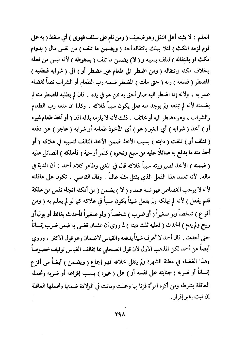 قَالَ أَحْمَدُ لَا أَعْرِفُ شَيْئًا يَدْفَعُهُ وَالْقِيَاسُ لَا ضَمَانَ وَهُوَ قَوْلُ الْأَكْثَرِ،.