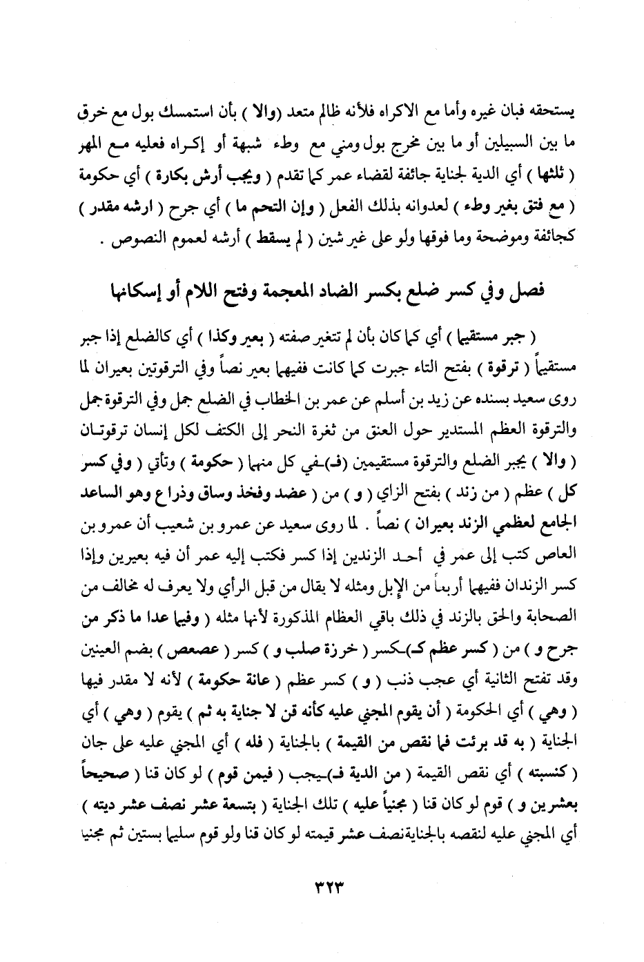 يَسْتَحِقُّهُ فَبَانَ غَيْرُهُ، وَأَمَّا مَعَ الْإِكْرَاهِ فَلِأَنَّهُ ظَالِمٌ مُتَعَدٍّ (وَإِلَّا) بِأَنْ اسْتَمْسَكَ بَوْلٌ مَعَ خَرْقِ مَا بَيْنَ السَّبِيلَيْنِ، أَوْ مَا بَيْنَ مَخْرَجِ بَوْلٍ وَمَنِيٍّ مَعَ وَطْءِ شُبْهَةٍ أَوْ إكْرَاهٍ فَعَلَيْهِ مَعَ الْمَهْرِ (ثُلُثُهَا) أَيْ: الدِّيَةِ لِجِنَايَةِ جَائِفَةٍ لِقَضَاءِ عُمَرَ كَمَا تَقَدَّمَ