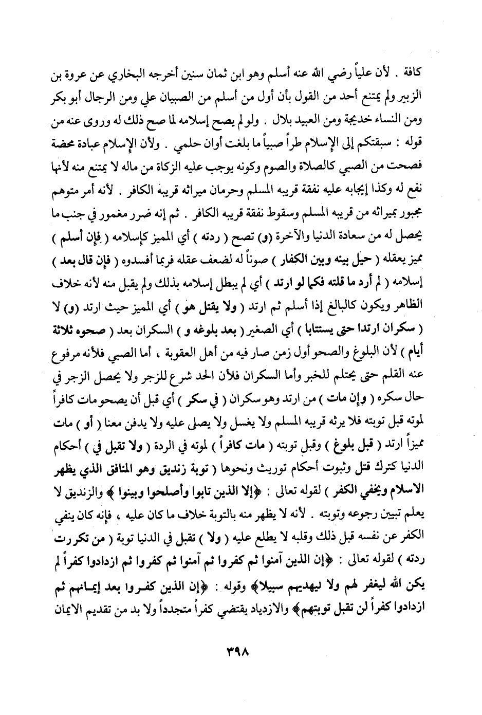وَرُوِيَ عَنْهُ مِنْ قَوْلِهِ: سَبَقْتُكُمْ إلَى الْإِسْلَامِ طَرًّا صَبِيًّا مَا بَلَغْت أَوَانَ حُلُمِي. وَلِأَنَّ الْإِسْلَامَ عِبَادَةٌ مَحْضَةٌ فَصَحَّتْ مِنْ الصَّبِيِّ كَالصَّلَاةِ وَالصَّوْمِ، وَكَوْنِهِ يُوجَبُ عَلَيْهِ الزَّكَاةُ مِنْ مَالِهِ لَا يَمْتَنِعُ مِنْهُ لِأَنَّهَا نَفْعٌ لَهُ وَكَذَا إيجَابُهُ عَلَيْهِ نَفَقَةَ قَرِيبِهِ الْمُسْلِمِ، وَحِرْمَانُ مِيرَاثِهِ قَرِيبَهُ الْكَافِرَ. لِأَنَّهُ أَمْرٌ مُتَوَهَّمٌ مَجْبُورٌ بِمِيرَاثِهِ مِنْ قَرِيبِهِ الْمُسْلِمِ وَسُقُوطِ نَفَقَةِ قَرِيبِهِ الْكَافِرِ ثُمَّ إنَّهُ ضَرَرٌ مَغْمُورٌ فِي جَنْبٍ مَا يَحْصُلُ لَهُ مِنْ سَعَادَةِ الدُّنْيَا وَالْآخِرَةُ.