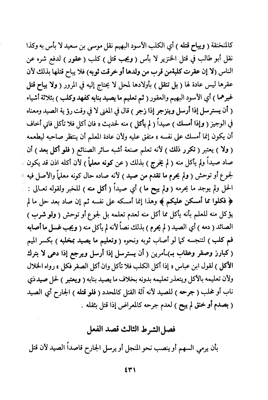 فَصْلٌ الشَّرْطُ الثَّالِثُ قَصْدُ الْفِعْلِ بِأَنْ يَرْمِيَ السَّهْمَ أَوْ يَنْصِبَ نَحْوَ الْمِنْجَلِ أَوْ يُرْسِلَ الْجَارِحَ قَاصِدًا الصَّيْدَ لِأَنَّ قَتْلَ