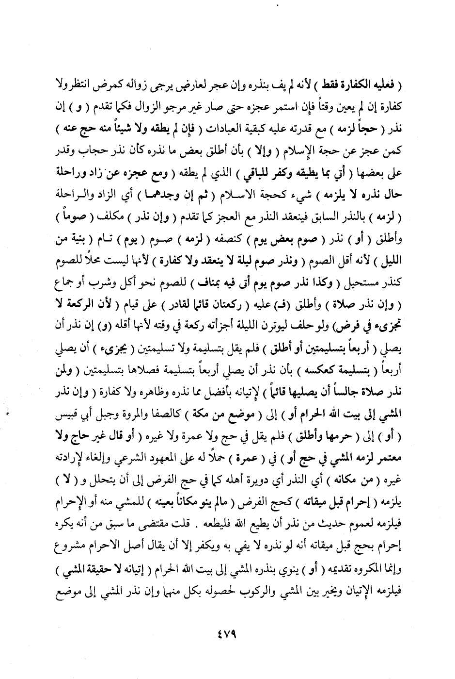 (فَعَلَيْهِ الْكَفَّارَةُ فَقَطْ) لِأَنَّهُ لَمْ يَفِ بِنَذْرِهِ إنْ عَجَزَ لِعَارِضٍ يُرْجَى زَوَالُهُ كَمَرَضٍ انْتَظَرَ وَلَا كَفَّارَةَ إنْ لَمْ يُعَيِّنْ وَقْتًا فَإِنْ اسْتَمَرَّ عَجْزُهُ حَتَّى صَارَ غَيْرَ مَرْجُوِّ الزَّوَالِ فَكَمَا تَقَدَّمَ