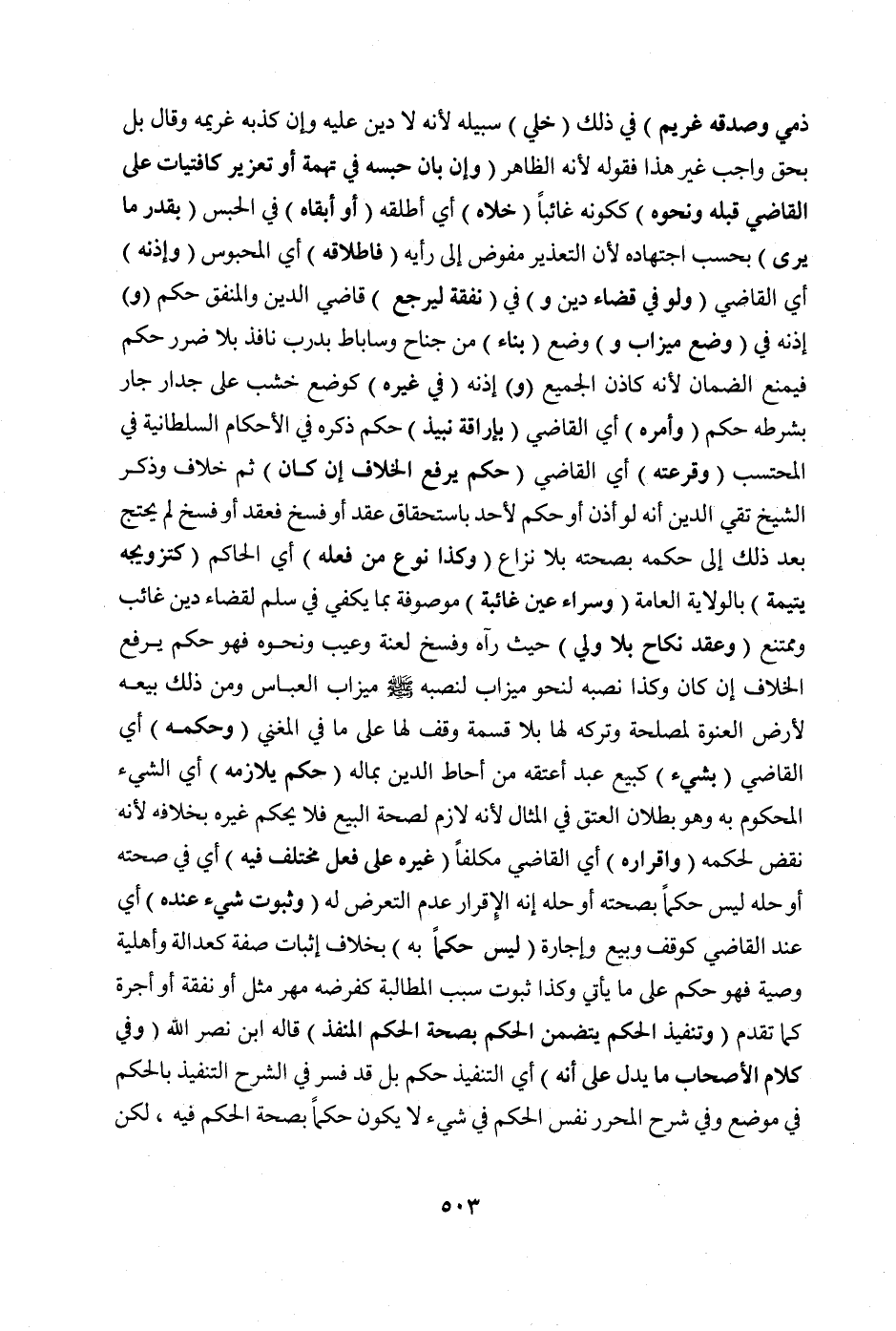 ذِمِّيٍّ وَصَدَّقَهُ غَرِيمٌ) فِي ذَلِكَ (خَلَّى) سَبِيلَهُ ; لِأَنَّهُ لَا دَيْنَ عَلَيْهِ، وَإِنْ كَذَّبَهُ غَرِيمَهُ وَقَالَ: بَلْ بِحَقٍّ وَاجِبٍ غَيْرِ هَذَا فَقَوْلَهُ: لِأَنَّهُ الظَّاهِرُ (وَإِنْ بَانَ حَبْسُهُ فِي تُهْمَةٍ أَوْ تَعْزِيرٍ كَافْتِيَاتٍ عَلَى الْقَاضِي قَبْلَهُ وَنَحْوَهُ) كَكَوْنِهِ غَائِبًا (خَلَّاهُ) أَيْ: أَطْلَقَهُ، (أَوْ أَبْقَاهُ) فِي الْحَبْسِ (بِقَدْرِ مَا يَرَى) بِحَسْبِ اجْتِهَادِهِ ; لِأَنَّ التَّعْزِيرَ مُفَوَّضٌ إلَى رَأْيِهِ (فَإِطْلَاقُهُ) أَيْ: الْمَحْبُوسِ