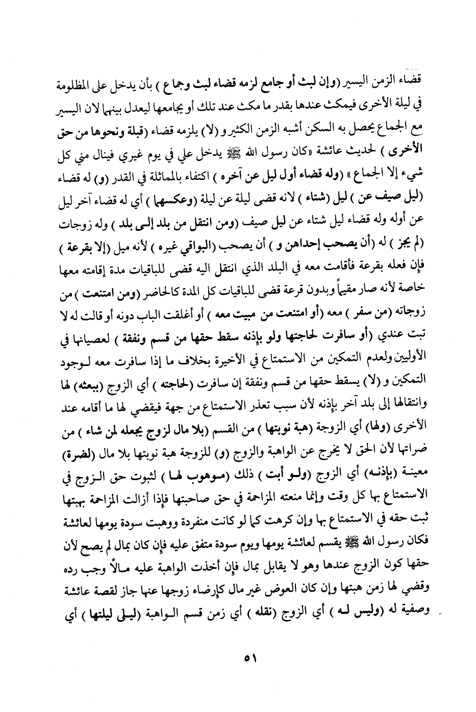 (وَلَهَا) أَيْ: الزَّوْجَةِ (هِبَةُ نَوْبَتِهَا) مِنْ الْقَسْمِ (بِلَا مَالٍ لِزَوْجٍ يَجْعَلُهُ لِمَنْ شَاءَ) مِنْ ضَرَّاتِهَا ; لِأَنَّ الْحَقَّ لَا يَخْرُجُ عَنْ الْوَاهِبَةِ، وَالزَّوْجِ (وَ) لِلزَّوْجَةِ هِبَةُ نَوْبَتَهَا بِلَا مَالٍ (لِضَرَّةٍ) مُعَيَّنَةٍ (بِإِذْنِهِ) أَيْ: الزَّوْجِ (وَلَوْ أَبَتْ) ذَلِكَ (مَوْهُوبٌ لَهَا) لِثُبُوتِ حَقِّ الزَّوْجِ فِي الِاسْتِمْتَاعِ بِهَا كُلَّ وَقْتٍ وَإِنَّمَا مَنَعَتْهُ الْمُزَاحِمَةُ فِي حَقِّ صَاحِبَتِهَا فَإِذَا أَزَالَتْ الْمُزَاحِمَةُ بِهِبَتِهَا ثَبَتَ حَقُّهُ فِي الِاسْتِمْتَاعِ بِهَا وَإِنْ كَرِهَتْ كَمَا لَوْ كَانَتْ مُنْفَرِدَةً «، وَوَهَبَتْ سَوْدَةُ يَوْمَهَا لِعَائِشَةَ فَكَانَ رَسُولُ اللَّهِ صَلَّى اللَّهُ عَلَيْهِ وَسَلَّمَ يَقْسِمُ لِعَائِشَةَ يَوْمَهَا، وَيَوْمَ سَوْدَةَ» مُتَّفَقٌ عَلَيْهِ. فَإِنْ كَانَ بِمَالٍ لَمْ يَصِحَّ ; لِأَنَّ حَقَّهَا كَوْنُ الزَّوْجِ عِنْدَهَا وَهُوَ لَا يُقَابَلُ بِمَالٍ فَإِنْ أَخَذَتْ الْوَاهِبَةُ عَلَيْهِ مَالًا وَجَبَ رَدُّهُ، وَقَضَى لَهَا زَمَنَ هِبَتِهَا وَإِنْ كَانَ الْعِوَضُ غَيْرَ مَالٍ كَإِرْضَاءِ زَوْجِهَا عَنْهَا جَازَ لِقِصَّةِ عَائِشَةَ، وَصَفِيَّةَ لَهُ (وَلَيْسَ لَهُ) أَيْ: الزَّوْجِ (نَقْلُهُ) أَيْ: زَمَنِ قَسْمِ الْوَاهِبَةِ (لِيَلِيَ لَيْلَتَهَا) أَيْ: