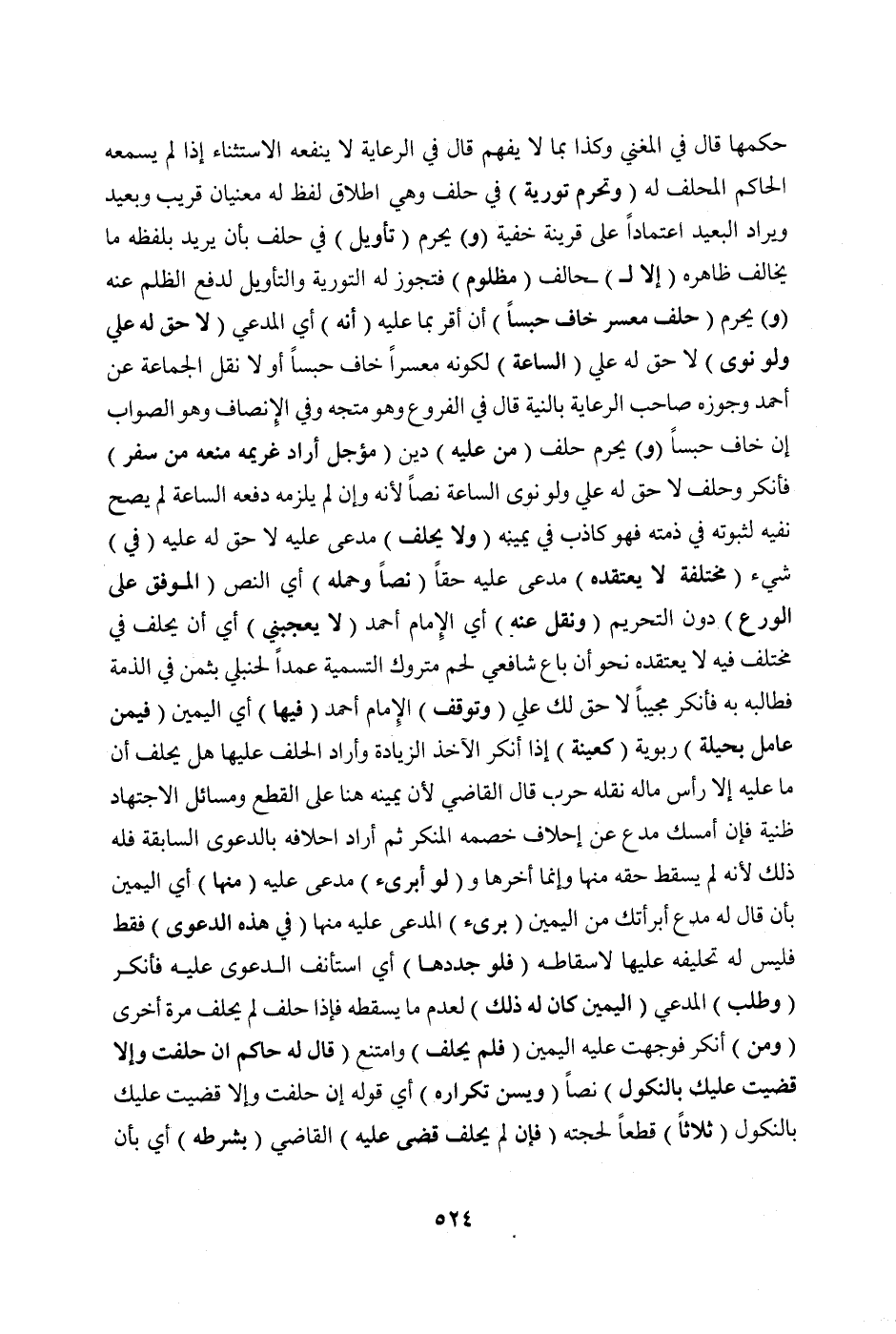 (وَلَا يَحْلِفُ) مُدَّعًى عَلَيْهِ لَا حَقَّ لَهُ عَلَيْهِ (فِي) شَيْءٍ (مُخْتَلَفٍ فِيهِ، لَا يَعْتَقِدُهُ) مُدَّعًى عَلَيْهِ حَقًّا (نَصًّا وَحَمَلَهُ) أَيْ النَّصِّ (الْمُوَفَّقُ عَلَى الْوَرَعِ) دُونَ التَّحْرِيمِ، (وَنُقِلَ عَنْهُ) أَيْ الْإِمَامِ أَحْمَدَ (لَا يُعْجِبُنِي) أَيْ أَنْ يَحْلِفَ فِي مُخْتَلَفٍ فِيهِ لَا يَعْتَقِدُهُ نَحْوَ إنْ بَاعَ شَافِعِيٌّ لَحْمَ مَتْرُوكِ التَّسْمِيَةِ عَمْدًا لِحَنْبَلِيٍّ بِثَمَنٍ فِي الذِّمَّةِ، فَطَالَبَهُ بِهِ فَأَنْكَرَ مُجِيبًا: لَا حَقَّ لَك عَلَيَّ (وَتَوَقَّفَ) الْإِمَامُ أَحْمَدُ (فِيهَا) أَيْ الْيَمِينِ (فِيمَنْ عَامَلَ بِحِيلَةٍ) رِبَوِيَّةٍ (كَعِينَةٍ) إذَا أَنْكَرَ الْآخِذُ الزِّيَادَةَ وَأَرَادَ الْحَلِفَ عَلَيْهَا هَلْ يَحْلِفُ أَنَّ مَا عَلَيْهِ إلَّا رَأْسَ مَالِهِ، نَقَلَهُ حَرْبٌ قَالَ الْقَاضِي: لِأَنَّ يَمِينَهُ هُنَا عَلَى الْقَطْعِ، وَمَسَائِلُ الِاجْتِهَادِ ظَنِّيَّةٌ فَإِنْ أَمْسَكَ مُدَّعٍ عَنْ إحْلَاف خَصْمِهِ الْمُنْكِرِ ثُمَّ أَرَادَ إحْلَافه بِالدَّعْوَى السَّابِقَةِ فَلَهُ ذَلِكَ ; لِأَنَّهُ لَمْ يُسْقِطْ حَقَّهُ مِنْهَا وَإِنَّمَا أَخَّرَهَا
