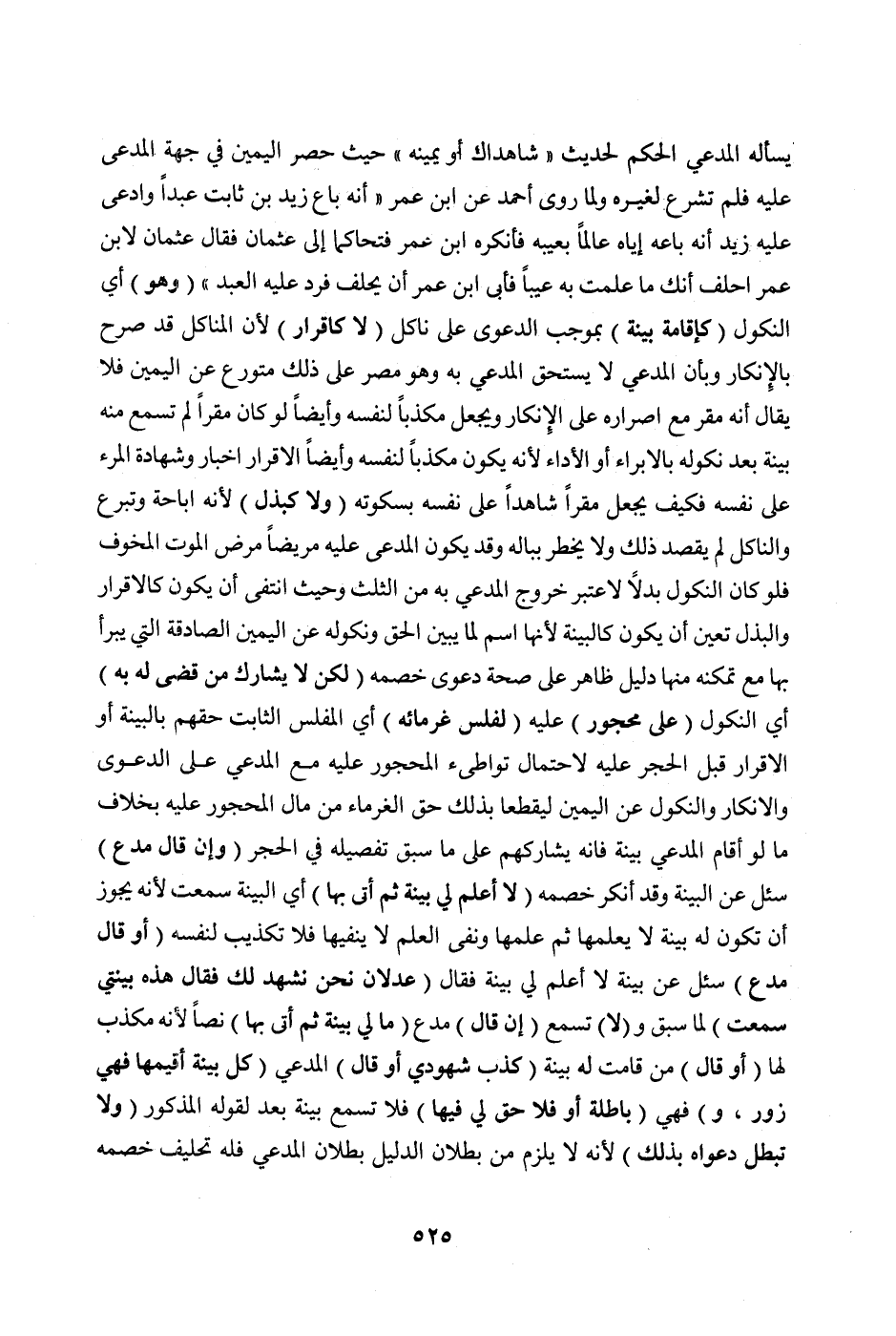 وَلِمَا رَوَى أَحْمَدُ عَنْ ابْنِ عُمَرَ " أَنَّهُ بَاعَ زَيْدَ بْنَ ثَابِتٍ عَبْدًا وَادَّعَى عَلَيْهِ زَيْدٌ أَنَّهُ بَاعَهُ إيَّاهُ عَالِمًا بِعَيْبِهِ فَأَنْكَرَهُ ابْنُ عُمَرَ، فَتَحَاكَمَا إلَى عُثْمَانَ فَقَالَ عُثْمَانُ لِابْنِ عُمَرَ: احْلِفْ أَنَّك مَا عَلِمْت بِهِ عَيْبًا فَأَبَى ابْنُ عُمَرَ أَنْ يَحْلِفَ فَرَدَّ عَلَيْهِ الْعَبْدَ "، (وَهُوَ) أَيْ النُّكُولُ (كَإِقَامَةِ بَيِّنَةٍ) بِمُوجَبِ الدَّعْوَى عَلَى نَاكِلٍ (لَا كَإِقْرَارٍ) ; لِأَنَّ النَّاكِلَ قَدْ صَرَّحَ بِالْإِنْكَارِ وَبِأَنَّ الْمُدَّعِيَ لَا يَسْتَحِقُّ الْمُدَّعَى بِهِ وَهُوَ مُصِرٌّ عَلَى ذَلِكَ مُتَوَرِّعٌ عَنْ الْيَمِينِ، فَلَا يُقَالُ: إنَّهُ مُقِرٌّ مَعَ إصْرَارِهِ عَلَى الْإِنْكَارِ وَيُجْعَلُ مُكَذِّبًا لِنَفْسِهِ، وَأَيْضًا لَوْ كَانَ مُقِرًّا لَمْ تُسْمَعْ مِنْهُ بَيِّنَةٌ بَعْدَ نُكُولِهِ بِالْإِبْرَاءِ أَوْ الْأَدَاءِ ; لِأَنَّهُ يَكُونُ مُكَذِّبًا لِنَفْسِهِ، وَأَيْضًا الْإِقْرَارُ إخْبَارٌ وَشَهَادَةٌ لِلْمَرْءِ عَلَى نَفْسِهِ، فَكَيْفَ يُجْعَلُ مُقِرًّا شَاهِدًا عَلَى نَفْسِهِ بِسُكُوتِهِ؟ (وَلَا كَبَذْلٍ) لِأَنَّهُ إبَاحَةٌ وَتَبَرُّعٌ، وَالنَّاكِلُ لَمْ يَقْصِدْ ذَلِكَ وَلَا يَخْطِرُ بِبَالِهِ، وَقَدْ يَكُونُ الْمُدَّعَى عَلَيْهِ مَرِيضًا مَرَضَ الْمَوْتِ الْمَخُوفَ، فَلَوْ كَانَ النُّكُولُ بَدَلًا لَاعْتُبِرَ خُرُوجُ الْمُدَّعَى بِهِ مِنْ الثُّلُثِ وَحَيْثُ انْتَفَى أَنْ يَكُونَ كَالْإِقْرَارِ وَالْبَذْلِ تَعَيَّنَ أَنْ يَكُونَ كَالْبَيِّنَةِ ; لِأَنَّهَا اسْمٌ لِمَا يُبَيِّنُ الْحَقَّ، وَنُكُولٌ عَنْ الْيَمِينِ الصَّادِقَةِ الَّتِي يَبْرَأُ بِهَا مَعَ تَمَكُّنِهِ مِنْهَا دَلِيلٌ ظَاهِرٌ عَلَى صِحَّةِ دَعْوَى خَصْمِهِ.
