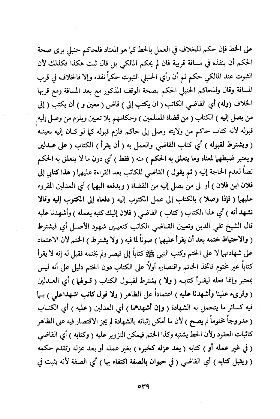 عَلَى الْخَطِّ، فَإِنْ حَكَمَ لِلْخِلَافِ فِي الْعَمَلِ بِالْخَطِّ كَمَا هُوَ الْمُعْتَادُ فَلِحَاكِمٍ حَنْبَلِيٍّ يَرَى صِحَّةَ الْحُكْمِ أَنْ يُنْفِذَهُ فِي مَسَافَةٍ قَرِيبَةٍ، فَإِنْ لَمْ يَحْكُمْ الْمَالِكِيُّ بَلْ قَالَ ثَبَتَ هَكَذَا فَكَذَلِكَ ; لِأَنَّ الثُّبُوتَ عِنْدَ الْمَالِكِيِّ حُكْمٌ ثُمَّ إنْ رَأَى الْحَنْبَلِيُّ الثُّبُوتَ حُكْمًا نَفَّذَهُ وَإِلَّا فَالْخِلَافُ فِي قُرْبِ الْمَسَافَةِ، وَقَالَ: وَلِلْحَاكِمِ الْحَنْبَلِيِّ الْحُكْمُ بِصِحَّةِ الْوَقْفِ الْمَذْكُورِ مَعَ بُعْدِ الْمَسَافَةِ وَمَعَ قُرْبِهَا الْخِلَافُ.