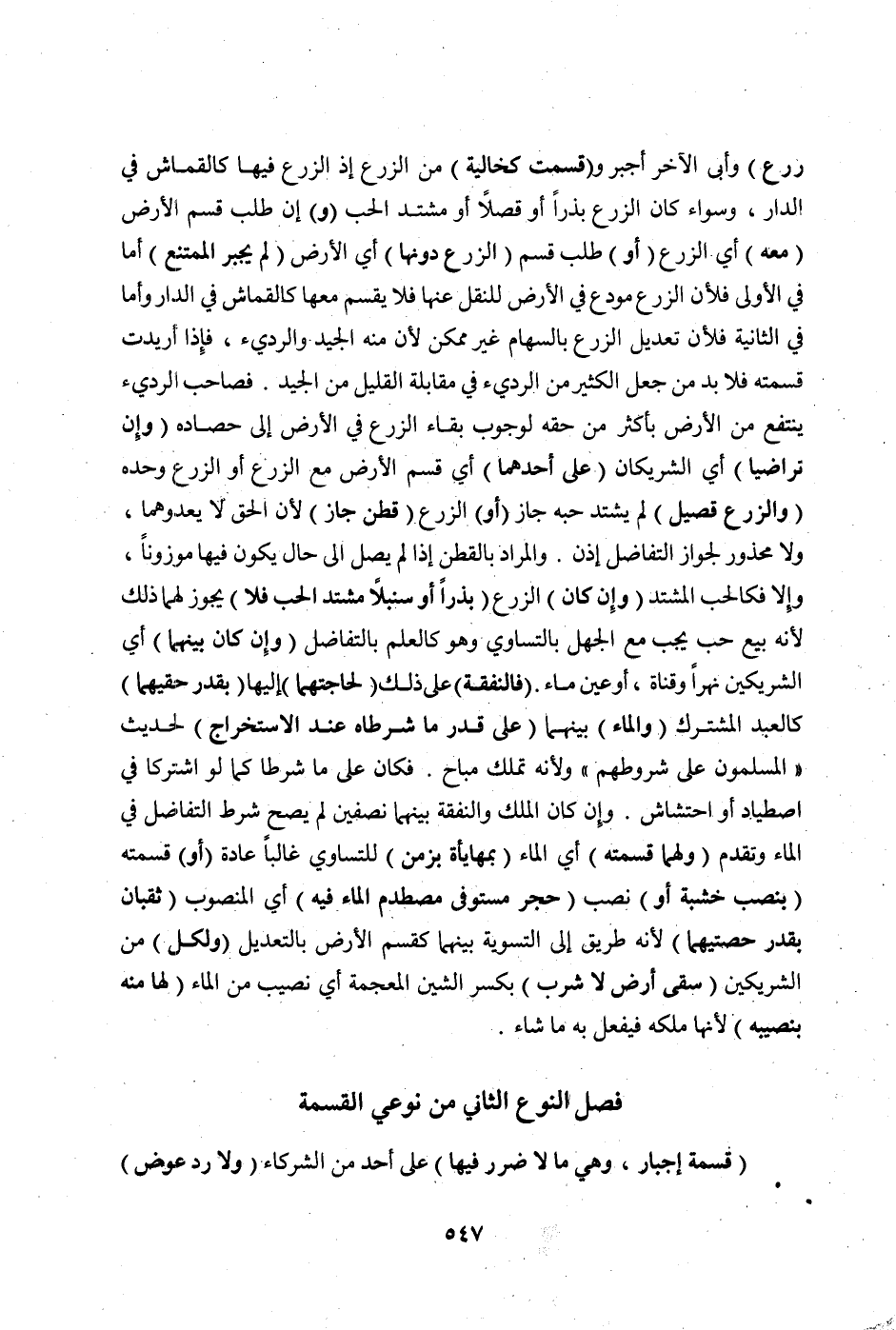[فَصْلُ النَّوْعِ الثَّانِي مِنْ نَوْعَيْ الْقِسْمَةِ]