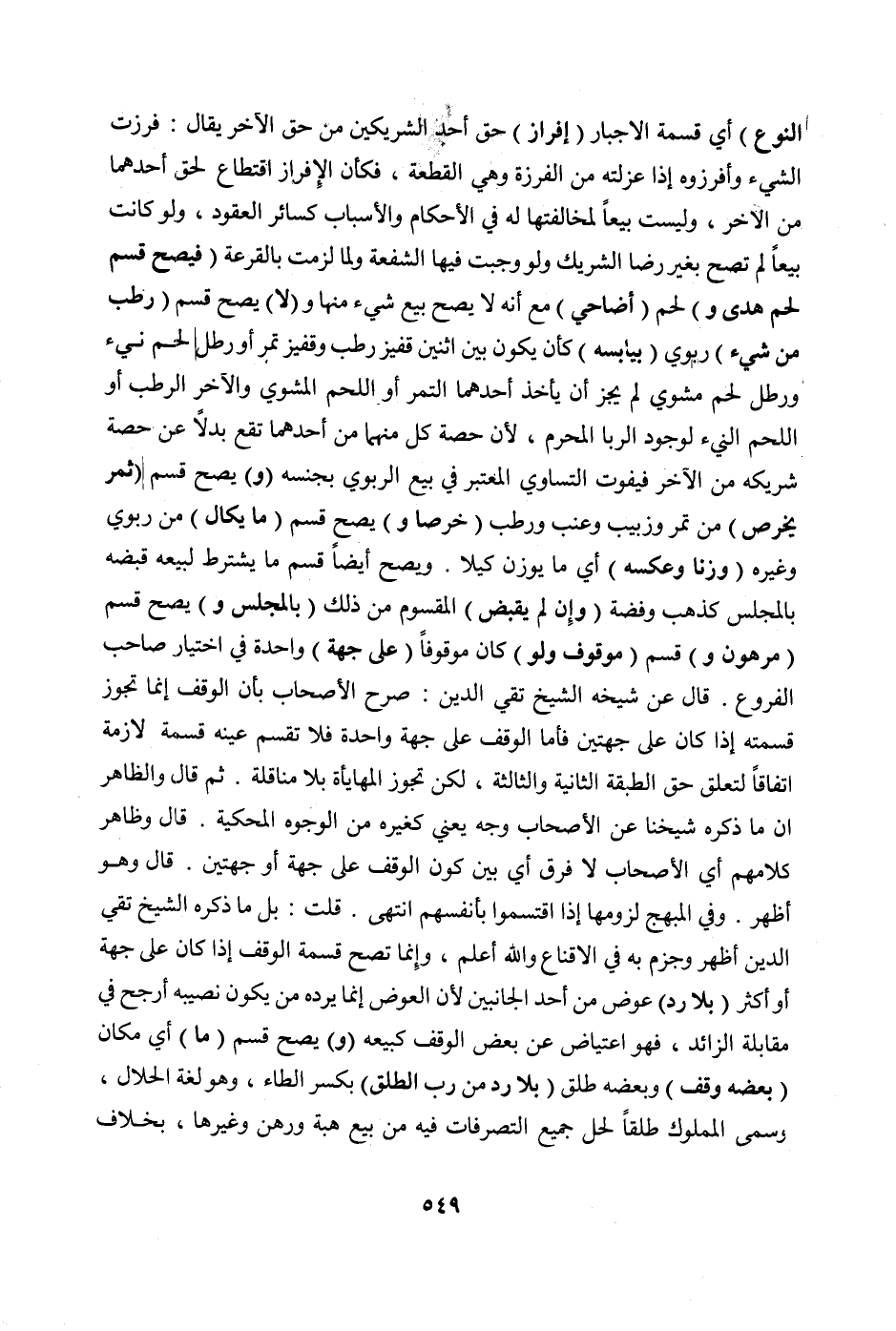 وَفِي الْمُبْهِجِ لُزُومُهَا إذَا اقْتَسَمُوا بِأَنْفُسِهِمْ انْتَهَى. قُلْت: بَلْ مَا ذَكَرَهُ الشَّيْخُ تَقِيُّ الدِّينِ أَظْهَرُ وَجَزَمَ بِهِ فِي الْإِقْنَاعِ وَاَللَّهُ أَعْلَمُ، وَإِنَّمَا تَصِحُّ قِسْمَةُ الْوَقْفِ إذَا كَانَ عَلَى جِهَةٍ أَوْ أَكْثَرَ (بِلَا رَدِّ) عِوَضٍ مِنْ أَحَدِ الْجَانِبَيْنِ ; لِأَنَّ الْعِوَضَ إنَّمَا يَرُدُّهُ مَنْ يَكُونُ نَصِيبُهُ أَرْجَحَ فِي مُقَابَلَةِ الزَّائِدِ، فَهُوَ اعْتِيَاضٌ عَنْ بَعْضِ الْوَقْفِ كَبَيْعِهِ