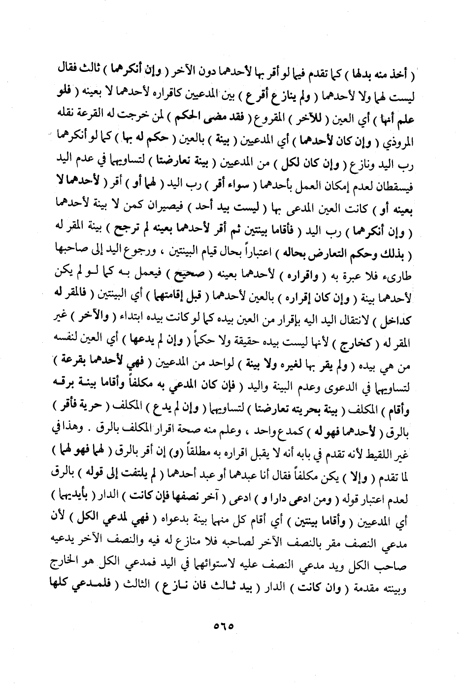 (وَإِنْ أَنْكَرَهُمَا) رَبُّ الْيَدِ (فَأَقَامَا بَيِّنَتَيْنِ ثُمَّ أَقَرَّ لِأَحَدِهِمَا بِعَيْنِهِ لَمْ تُرَجَّحْ) بَيِّنَةُ الْمُقَرِّ لَهُ (بِذَلِكَ، وَحُكْمُ التَّعَارُضِ بِحَالِهِ) اعْتِبَارًا بِحَالِ قِيَامِ الْبَيِّنَتَيْنِ، وَرُجُوعُ الْيَدِ إلَى صَاحِبِهَا طَارِئٌ فَلَا عِبْرَةَ بِهِ، (وَإِقْرَارُهُ) لِأَحَدِهِمَا بِعَيْنِهِ (صَحِيحٌ) فَيُعْمَلُ بِهِ كَمَا لَوْ لَمْ يَكُنْ لِأَحَدِهِمَا بَيِّنَةٌ. (وَإِنْ كَانَ إقْرَارُهُ) بِالْعَيْنِ لِأَحَدِهِمَا (قَبْلَ إقَامَتِهِمَا) أَيْ الْبَيِّنَتَيْنِ، (فَالْمُقَرُّ لَهُ كَدَاخِلٍ) لِانْتِقَالِ الْيَدِ إلَيْهِ بِإِقْرَارِ مَنْ الْعَيْنُ بِيَدِهِ، كَمَا لَوْ كَانَتْ بِيَدِهِ ابْتِدَاءً (وَالْآخَرُ) غَيْرُ الْمُقَرِّ لَهُ (كَخَارِجٍ) ; لِأَنَّهَا لَيْسَتْ بِيَدِهِ حَقِيقَةً وَلَا حُكْمًا، (وَإِنْ لَمْ يَدَّعِهَا) أَيْ الْعَيْنَ لِنَفْسِهِ مَنْ هِيَ بِيَدِهِ، (وَلَمْ يُقِرَّ بِهَا لِغَيْرِهِ وَلَا بَيِّنَةَ) لِوَاحِدٍ مِنْ الْمُدَّعِيَيْنِ (فَهِيَ لِأَحَدِهِمَا بِقُرْعَةٍ) لِتَسَاوِيهِمَا فِي الدَّعْوَى وَعَدَمِ الْبَيِّنَةِ وَالْيَدِ، (فَإِنْ كَانَ الْمُدَّعَى بِهِ مُكَلَّفًا وَأَقَامَا بَيِّنَةً بِرِقِّهِ وَأَقَامَ) الْمُكَلَّفُ (بَيِّنَةً بِحُرِّيَّتِهِ تَعَارَضَتَا) لِتَسَاوِيهِمَا، (وَإِنْ لَمْ يَدَّعِ) الْمُكَلَّفُ (حُرِّيَّةً فَأَقَرَّ) بِالرِّقِّ (لِأَحَدِهِمَا، فَهُوَ لَهُ) كَمُدَّعٍ وَاحِدٍ، وَعُلِمَ مِنْهُ صِحَّةُ إقْرَارِ الْمُكَلَّفِ بِالرِّقِّ، وَهَذَا فِي غَيْرِ اللَّقِيطِ ; لِأَنَّهُ تَقَدَّمَ فِي بَابِهِ أَنَّهُ لَا يُقْبَلُ إقْرَارُهُ بِهِ مُطْلَقًا، (وَ) إنْ أَقَرَّ بِالرِّقِّ (لَهُمَا فَهُوَ لَهُمَا) لِمَا تَقَدَّمَ، (وَإِلَّا) يَكُنْ مُكَلَّفًا فَقَالَ: أَنَا عَبْدُهُمَا أَوْ عَبْدُ أَحَدِهِمَا (لَمْ يُلْتَفَتْ إلَى قَوْلِهِ) بِالرِّقِّ لِعَدَمِ اعْتِبَارِ قَوْلِهِ