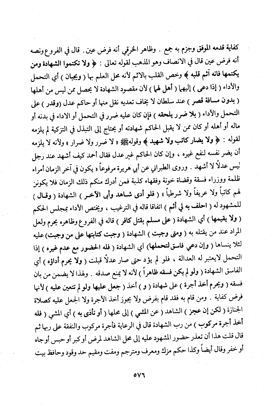 كِفَايَةٍ قَدَّمَهُ الْمُوَفَّقُ وَجَزَمَ بِهِ جَمْعٌ. وَظَاهِرُ الْخِرَقِيِّ أَنَّهُ فَرْضُ عَيْنٍ. قَالَ فِي الْفُرُوعِ: وَنَصُّهُ أَنَّهُ فَرْضُ عَيْنٍ قَالَ فِي الْإِنْصَافِ: وَهُوَ الْمَذْهَبُ لِقَوْلِهِ تَعَالَى: {وَلَا تَكْتُمُوا الشَّهَادَةَ وَمَنْ يَكْتُمْهَا فَإِنَّهُ آثِمٌ قَلْبُهُ} [البقرة: ٢٨٣] وَخَصَّ الْقَلْبَ بِالْإِثْمِ ; لِأَنَّهُ مَحَلُّ الْعِلْمِ بِهَا