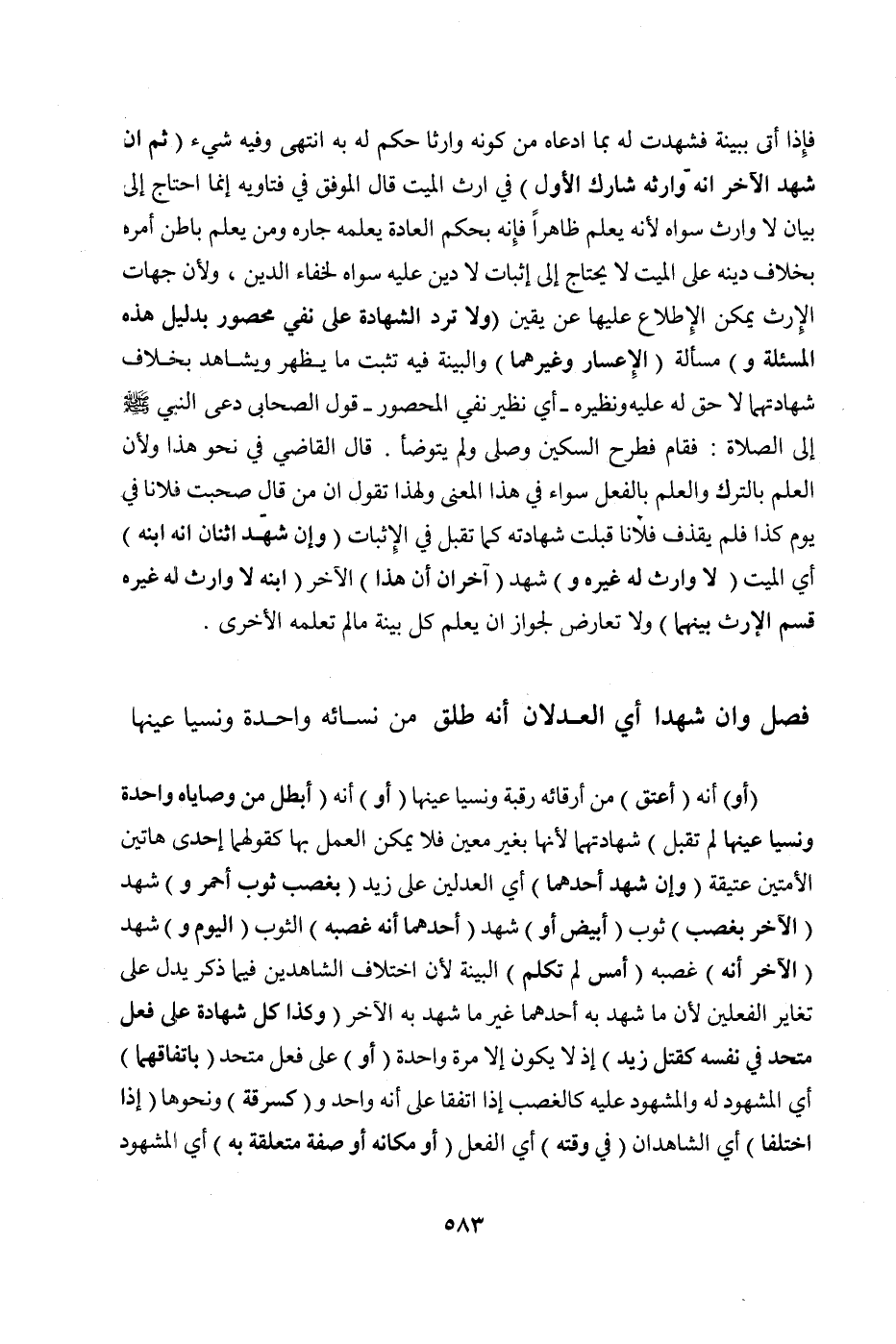 فَإِذَا أَتَى بِبَيِّنَةٍ فَشَهِدَتْ لَهُ بِمَا ادَّعَاهُ مِنْ كَوْنِهِ وَارِثًا حُكِمَ لَهُ بِهِ انْتَهَى، وَفِيهِ شَيْءٌ، (ثُمَّ إنْ شَهِدَ الْآخَرُ أَنَّهُ وَارِثُهُ شَارَكَ الْأَوَّلَ) فِي إرْثِ الْمَيِّتِ.