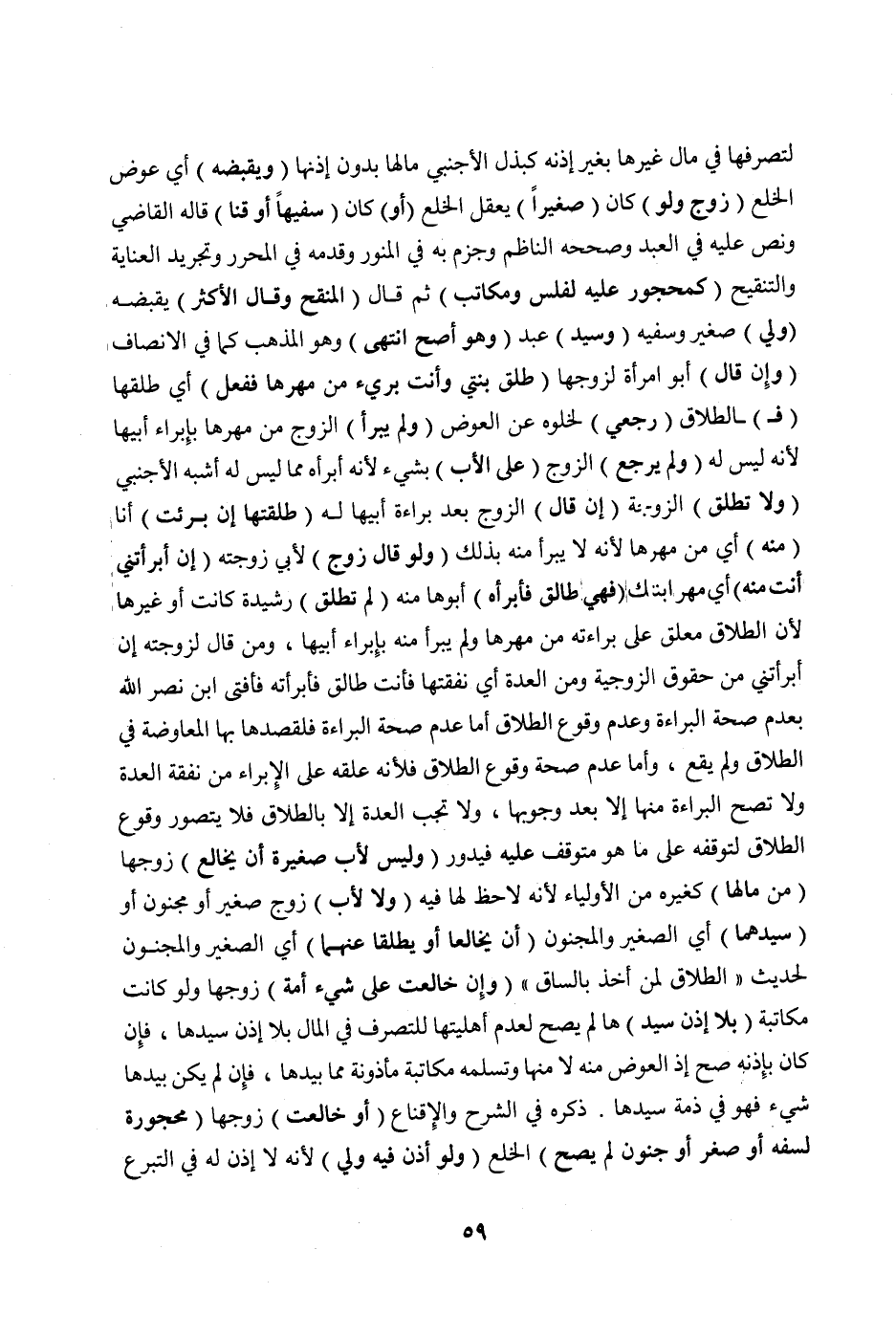 (وَلَيْسَ لِأَبِ صَغِيرَةٍ أَنْ يُخَالِعَ) زَوْجَهَا (مِنْ مَالِهَا) كَغَيْرِهِ مِنْ الْأَوْلِيَاءِ ; لِأَنَّهُ لَا حَظَّ لَهَا فِيهِ (وَلَا لِأَبِ) زَوْجٍ صَغِيرٍ أَوْ مَجْنُونٍ أَوْ (سَيِّدِهِمَا) أَيْ: الصَّغِيرِ، وَالْمَجْنُونِ (أَنْ يُخَالِعَا أَوْ يُطَلِّقَا عَنْهُمَا) أَيْ: الصَّغِيرِ، وَالْمَجْنُونِ لِحَدِيثِ " «الطَّلَاقُ لِمَنْ أَخَذَ بِالسَّاقِ» .