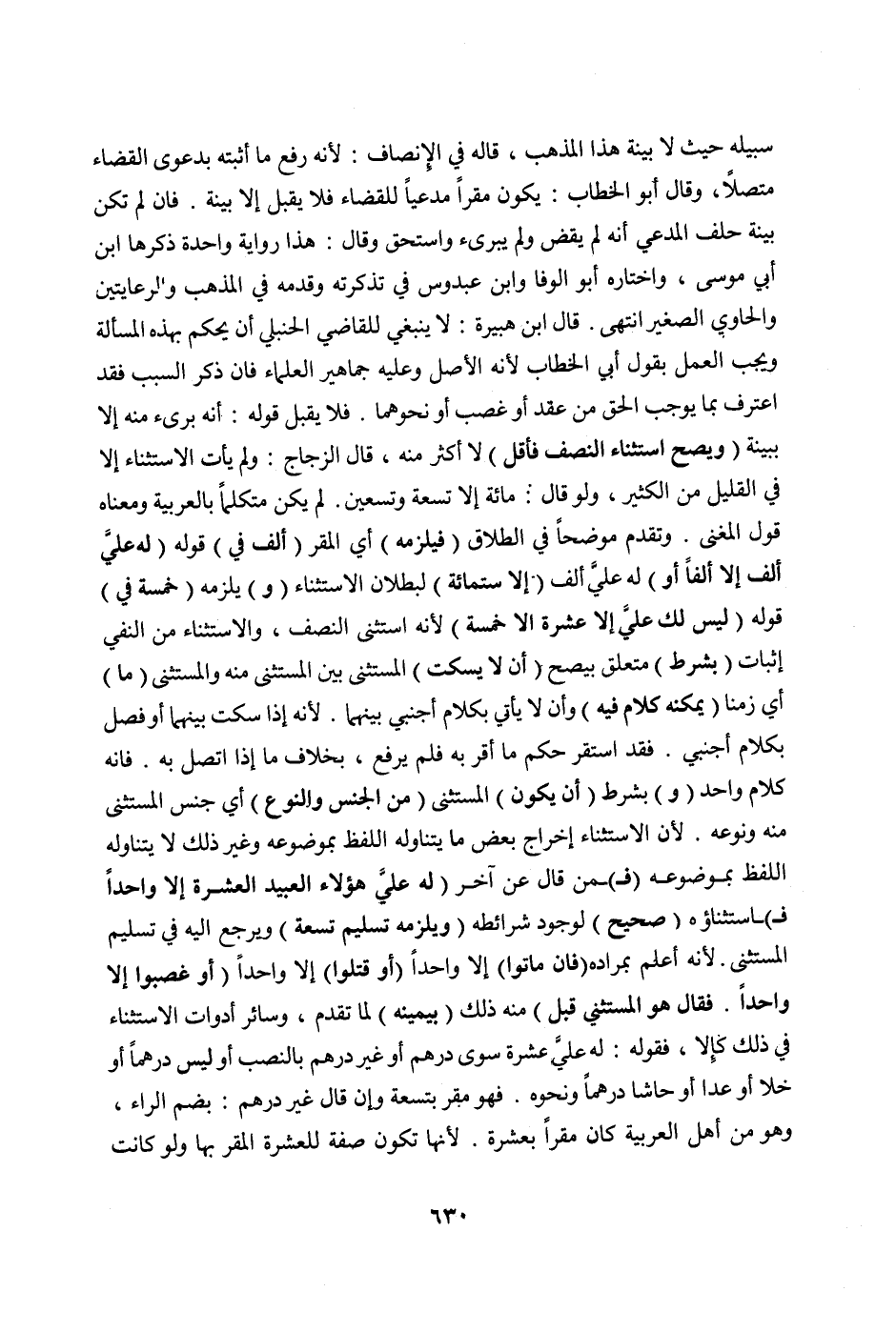 فَقَدْ اسْتَقَرَّ حُكْمُ مَا أَقَرَّ بِهِ فَلَمْ يَرْفَعْ، بِخِلَافِ مَا إذَا اتَّصَلَ بِهِ. فَإِنَّهُ كَلَامٌ وَاحِدٌ (وَ) بِشَرْطِ (أَنْ يَكُونَ) الْمُسْتَثْنَى (مِنْ الْجِنْسِ وَالنَّوْعِ) أَيْ جِنْسِ الْمُسْتَثْنَى مِنْهُ وَنَوْعِهِ. لِأَنَّ الِاسْتِثْنَاءَ إخْرَاجُ بَعْضِ مَا يَتَنَاوَلُ اللَّفْظُ بِمَوْضُوعِهِ وَغَيْرُ ذَلِكَ لَا يَتَنَاوَلُهُ اللَّفْظُ بِمَوْضُوعِهِ (فَ) مَنْ قَالَ عَنْ آخَرَ (لَهُ عَلَيَّ هَؤُلَاءِ الْعَبِيدُ الْعَشَرَةُ إلَّا وَاحِدًا ف) اسْتِثْنَاؤُهُ (صَحِيحٌ) لِوُجُودِ شَرَائِطِهِ (وَيَلْزَمُهُ تَسْلِيمُ تِسْعَةٍ) وَيَرْجِعُ إلَيْهِ فِي تَسْلِيمِ الْمُسْتَثْنَى. لِأَنَّهُ أَعْلَمُ بِمُرَادِهِ (فَإِنْ مَاتُوا) إلَّا وَاحِدًا (أَوْ قُتِلُوا) إلَّا وَاحِدًا (أَوْ غُصِبُوا إلَّا وَاحِدًا. فَقَالَ هُوَ الْمُسْتَثْنَى قُبِلَ) مِنْهُ ذَلِكَ (بِيَمِينِهِ) لِمَا تَقَدَّمَ، وَسَائِرُ أَدَوَاتِ الِاسْتِثْنَاءِ فِي ذَلِكَ كَإِلَّا، فَقَوْلُ: لَهُ عَلَيَّ عَشْرَةٌ سِوَى دِرْهَمٍ أَوْ غَيْرَ دِرْهَمٍ بِالنَّصْبِ أَوْ لَيْسَ دِرْهَمًا أَوْ خَلَا أَوْ عَدَا أَوْ حَاشَا دِرْهَمًا وَنَحْوَهُ. فَهُوَ مُقِرٌّ بِتِسْعَةٍ وَإِنْ قَالَ غَيْرُ دِرْهَمٍ: بِضَمِّ الرَّاءِ، وَهُوَ مِنْ أَهْلِ الْعَرَبِيَّةِ كَانَ مُقِرًّا بِعَشَرَةٍ. لِأَنَّهَا تَكُونُ صِفَةً لِلْعَشْرَةِ الْمُقَرِّ بِهَا وَلَوْ كَانَتْ