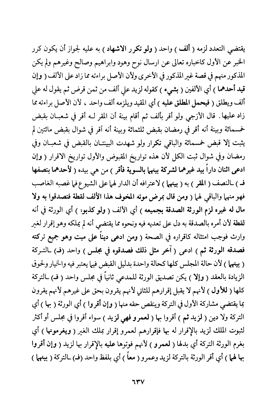 يَقْتَضِي التَّعَدُّدَ لَزِمَهُ (أَلْفٌ) وَاحِدٌ (وَلَوْ تَكَرَّرَ الْإِشْهَادُ) بِهِ عَلَيْهِ لِجَوَازِ أَنْ يَكُونَ كَرَّرَ الْخَبَرَ عَنْ الْأَوَّلِ كَإِخْبَارِهِ تَعَالَى عَنْ إرْسَالِ نُوحٍ وَهُودٍ وَإِبْرَاهِيمَ وَصَالِحٍ وَغَيْرِهِمْ وَلَمْ يَكُنْ الْمَذْكُورُ مِنْهُمْ فِي قِصَّةٍ غَيْرِ الْمَذْكُورِ فِي الْأُخْرَى وَلِأَنَّ الْأَصْلَ بَرَاءَتُهُ مِمَّا زَادَ عَلَى الْأَلْفِ (وَإِنْ قَيَّدَ أَحَدَهُمَا) أَيْ الْأَلْفَيْنِ (بِشَيْءٍ) كَقَوْلِهِ لِزَيْدٍ عَلَيَّ أَلْفٌ مِنْ ثَمَنِ قَرْضٍ ثُمَّ يَقُولُ لَهُ عَلَيَّ أَلْفٌ وَيُطْلِقُ (فَيُحْمَلُ الْمُطْلَقَ عَلَيْهِ) أَيْ الْمُقَيَّدِ وَيَلْزَمُهُ أَلْفٌ وَاحِدٌ، لِأَنَّ الْأَصْلَ بَرَاءَتُهُ مِمَّا زَادَ عَلَيْهَا.