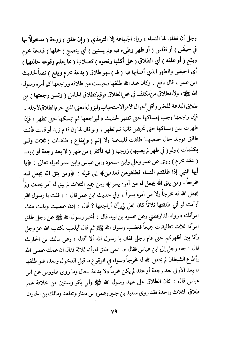 وَفِي حَدِيثِ ابْنِ عُمَرَ قَالَ: " «قُلْتُ: يَا رَسُولَ اللَّهِ أَرَأَيْتَ لَوْ أَنِّي طَلَّقْتُهَا ثَلَاثًا كَانَ يَحِلُّ لِي أَنْ أُرَاجِعَهَا؟ قَالَ: إذَنْ عَصَيْتَ، وَبَانَتْ مِنْكَ امْرَأَتُكَ» " رَوَاهُ الدَّارَقُطْنِيُّ، وَعَنْ مَحْمُودِ بْنِ لَبِيدٍ قَالَ: «أُخْبِرَ رَسُولُ اللَّهِ صَلَّى اللَّهُ عَلَيْهِ وَسَلَّمَ عَنْ رَجُلٍ طَلَّقَ امْرَأَتَهُ ثَلَاثَ تَطْلِيقَاتٍ جَمِيعًا فَغَضِبَ رَسُولُ اللَّهِ صَلَّى اللَّهُ عَلَيْهِ وَسَلَّمَ ثُمَّ قَالَ: أَيُلْعَبُ بِكِتَابِ اللَّهِ عَزَّ وَجَلَّ، وَأَنَا بَيْنَ أَظْهُرِكُمْ حَتَّى قَامَ رَجُلٌ فَقَالَ: يَا رَسُولَ اللَّهِ أَلَا أَقْتُلُهُ» "، وَعَنْ مَالِكِ بْنِ الْحَارِثِ قَالَ: جَاءَ رَجُلٌ إلَى ابْنِ عَبَّاسٍ فَقَالَ: عَمِّي طَلَّقَ امْرَأَتَهُ ثَلَاثَةً فَقَالَ: إنْ عَمَّكَ عَصَى اللَّهَ، وَأَطَاعَ الشَّيْطَانَ لَمْ يَجْعَلْ اللَّهُ لَهُ مَخْرَجًا وَسَوَاءٌ فِي الْوُقُوفِ مَا قَبْلَ الدُّخُولِ، وَبَعْدَهُ فَلَوْ طَلَّقَهَا مَا بَعْدَ الْأُولَى بَعْدَ رَجْعَةٍ أَوْ عَقْدٍ لَمْ يَكُنْ مُحَرَّمًا وَلَا بِدْعَةً بِحَالٍ وَمَا رَوَى طَاوُسٌ عَنْ ابْنِ عَبَّاسٍ قَالَ: «كَانَ الطَّلَاقُ عَلَى عَهْدِ رَسُولِ اللَّهِ صَلَّى اللَّهُ عَلَيْهِ وَسَلَّمَ، وَأَبِي بَكْرٍ، وَسَنَتَيْنِ مِنْ خِلَافَةِ عُمَرَ طَلَاقُ الثَّلَاثِ وَاحِدَةٌ» فَقَدْ رَوَى سَعِيدُ بْنُ جُبَيْرٍ، وَعَمْرُو بْنُ دِينَارٍ، وَمُجَاهِدٌ، وَمَالِكُ بْنُ الْحَارِثِ.