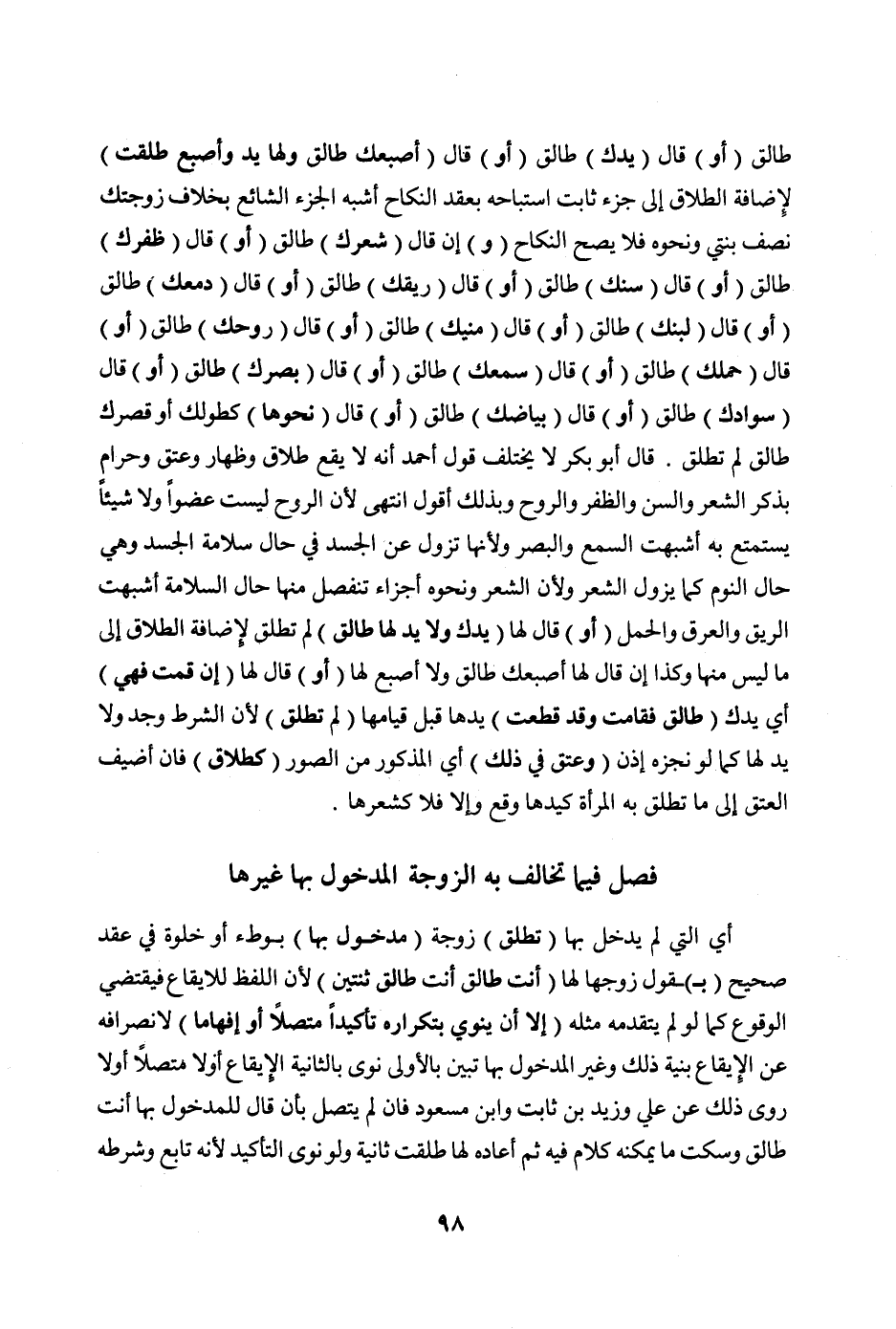 قَالَ أَبُو بَكْرٍ: لَا يَخْتَلِفُ قَوْلُ أَحْمَدَ أَنَّهُ لَا يَقَعُ طَلَاقٌ، وَظِهَارٌ، وَعِتْقٌ، وَحَرَامٌ بِذِكْرِ الشَّعْرِ، وَالسِّنِّ، وَالظُّفْرِ، وَالرُّوحِ، وَبِذَلِكَ أَقُولُ انْتَهَى ; لِأَنَّ الرُّوحَ لَيْسَتْ عُضْوًا وَلَا شَيْئًا يُسْتَمْتَعُ بِهِ أَشْبَهَتْ السَّمْعَ، وَالْبَصَرَ ; وَلِأَنَّهَا تَزُولُ عَنْ الْجَسَدِ فِي حَالِ سَلَامَةِ الْجَسَدِ وَهِيَ حَالُ النَّوْمِ كَمَا يَزُولُ الشَّعْرُ ; وَلِأَنَّ الشَّعْرَ وَنَحْوَهُ أَجْزَاءٌ تَنْفَصِلُ مِنْهَا حَالَ السَّلَامَةِ أَشْبَهَتْ الرِّيقَ، وَالْعَرَقَ، وَالْحَمْلَ.