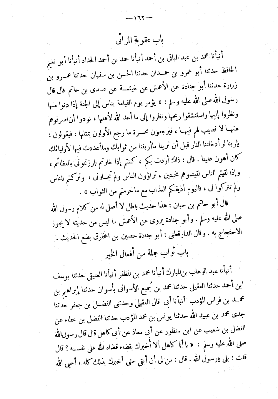 بَاب عُقُوبَة المرائى أَنْبَأَنَا مُحَمَّدُ بْنُ عَبْدِ الْبَاقِي بْن أَحْمَدَ أَنْبَأَنَا حَمَدُ بْنُ أَحْمَدَ الْحَدَّادُ أَنْبَأَنَا أَبُو نُعَيْمٍ
