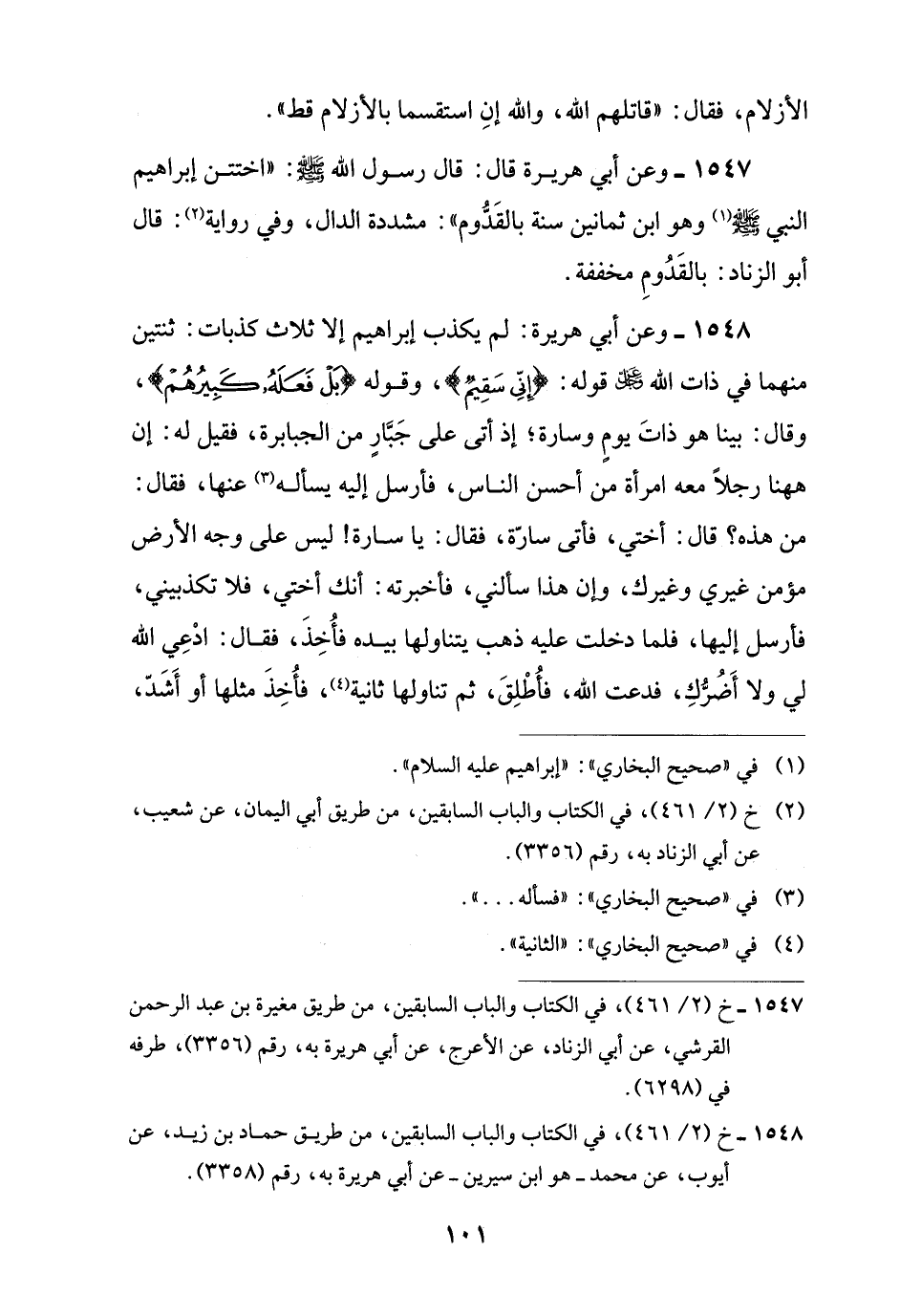 1547 - خ (2/ 461)، في الكتاب والباب السابقين، من طريق مغيرة بن عبد الرحمن القرشي، عن أبي الزناد، عن الأعرج، عن أبي هريرة به، رقم (3356)، طرفه في (6298).