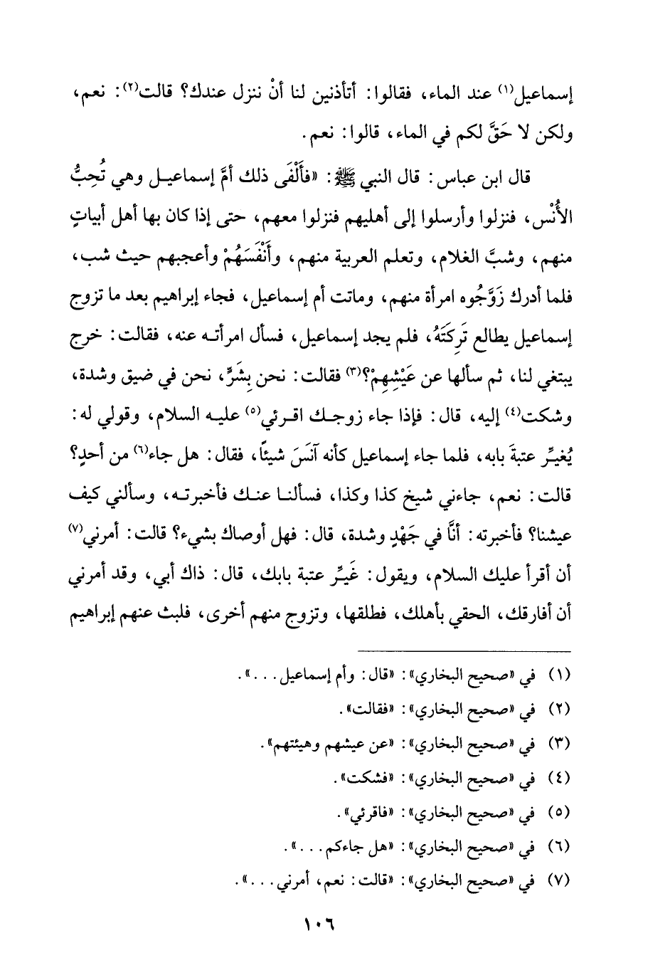 (¬1) في "صحيح البخاري": "قال: وأم إسماعيل. . . ".