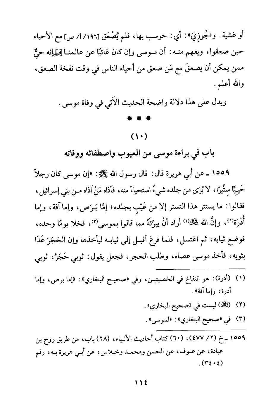 ويدل على هذا دلالة واضحة الحديث الآتي في وفاة موسى.