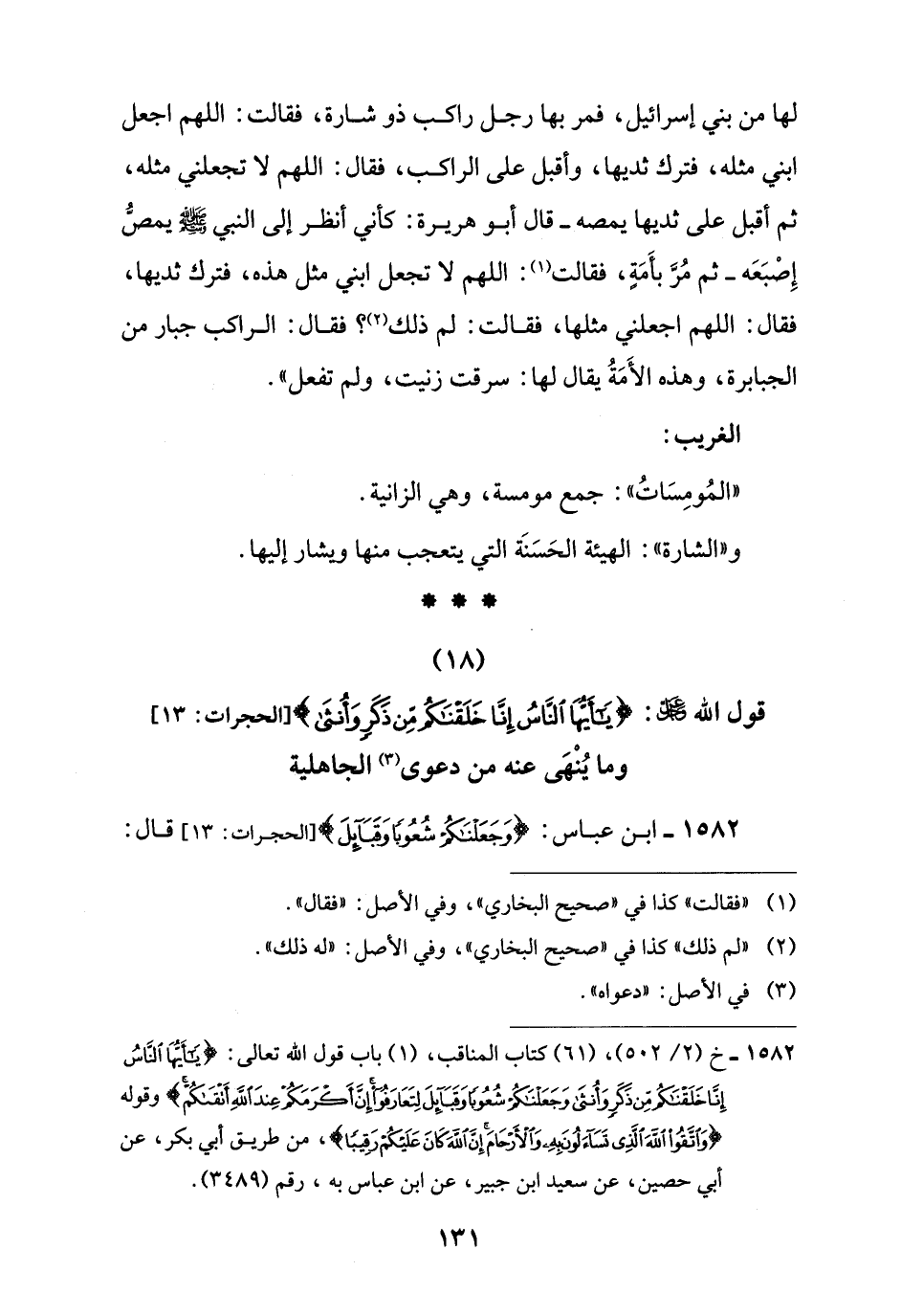 (18) قول اللَّه -عز وجل-: {يَاأَيُّهَا النَّاسُ إِنَّا خَلَقْنَاكُمْ مِنْ ذَكَرٍ وَأُنْثَى} [الحجرات: 13] وما يُنْهَى عنه من دعوى (¬3) الجاهلية