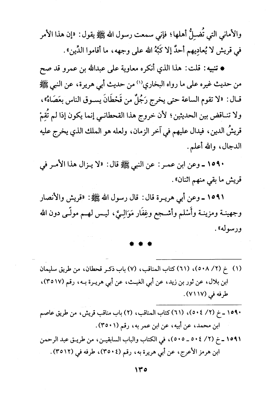 1590 - وعن ابن عمر: عن النبي -صلى اللَّه عليه وسلم- قال: "لا يزال هذا الأمر في قريش ما بقي منهم اثنان".