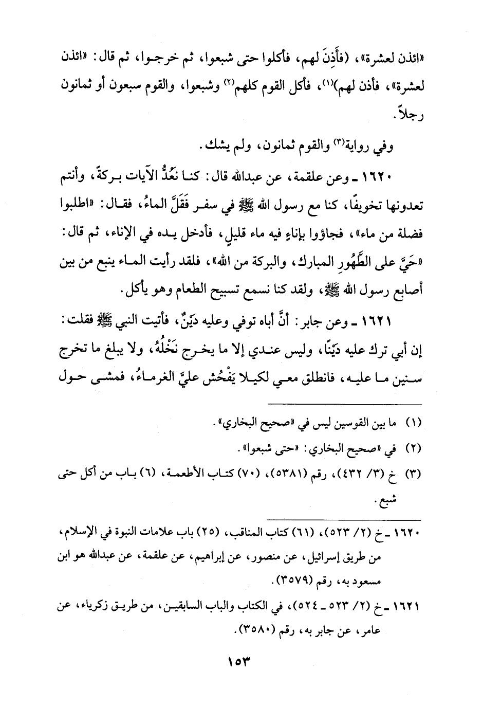 1620 - خ (2/ 523)، (61) كتاب المناقب، (25) باب علامات النبوة في الإِسلام، من طريق إسرائيل، عن منصور، عن إبراهيم، عن علقمة، عن عبد اللَّه هو ابن مسعود به، رقم (3579).