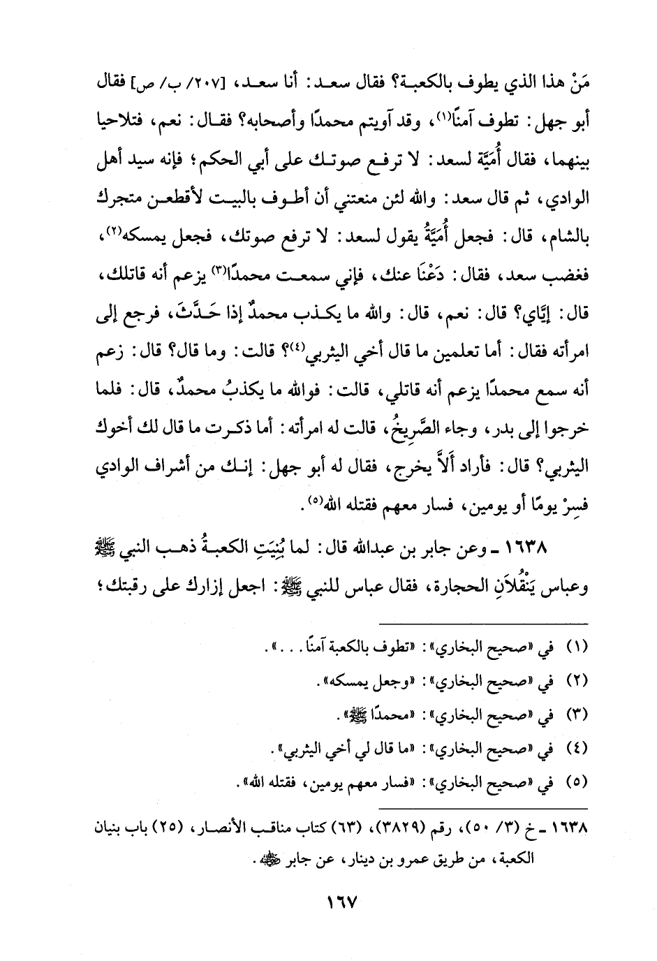 1638 - خ (3/ 50)، رقم (3829)، (63) كتاب مناقب الأنصار، (25) باب بنيان الكعبة، من طريق عمرو بن دينار، عن جابر -رضي اللَّه عنه-.