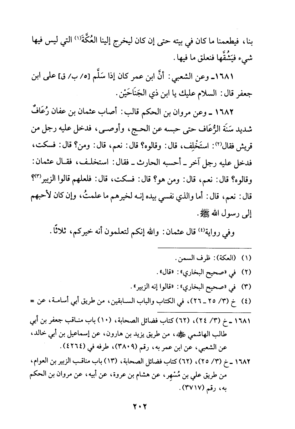 1682 - وعن مروان بن الحكم قالب: أصاب عثمان بن عفان رُعَافٌ شديد سَنَة الرُّعَاف حتى حبسه عن الحج، وأوصى، فدخل عليه رجل من قريش فقال (¬2): استَخْلِف، قال: وقالوه؟ قال: نعم، قال: ومن؟ قال: فسكت، فدخل عليه رجل آخر -أحسبه الحارث- فقال: استخلف، فقال عثمان: وقالوه؟ قال: نعم، قال: ومن هو؟ قال: فسكت، قال: فلعلهم قالوا الزبير (¬3)؟ قال: نعم، قال: أما والذي نفسي بيده إنه لخيرهم ما علمتُ، وإن كان لأحبهم إلى رسول اللَّه -صلى اللَّه عليه وسلم-.