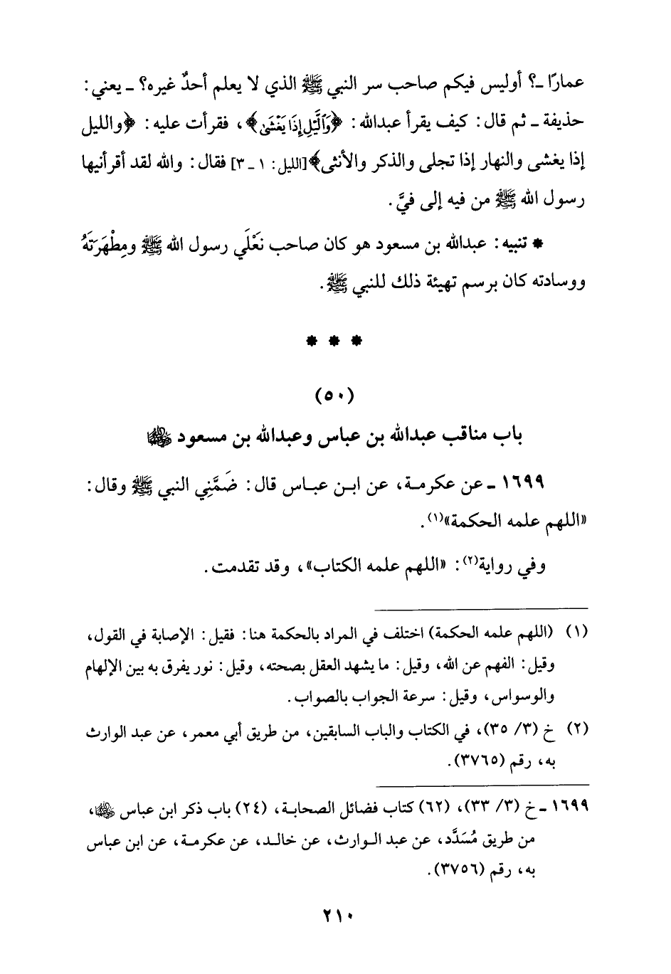 (50) باب مناقب عبد اللَّه بن عباس وعبد اللَّه بن مسعود -رضي اللَّه عنهما-