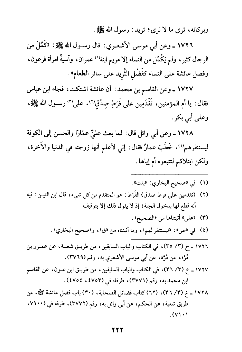 1726 - خ (3/ 35)، في الكتاب والباب السابقين، من طريق شعبة، عن عمرو بن مُرَّة، عن مُرَّة، عن أبي موسى الأشعري به، رقم (3769).