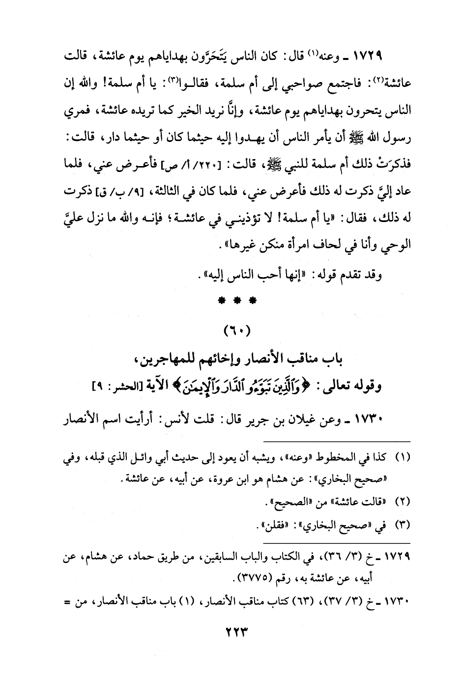1729 - خ (3/ 36)، في الكتاب والباب السابقين، من طريق حماد، عن هشام، عن أبيه، عن عائشة به، رقم (3775).
