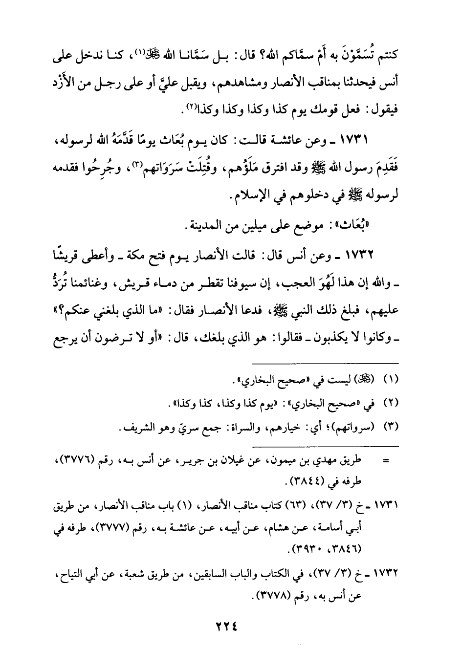 1731 - خ (3/ 37)، (63) كتاب مناقب الأنصار، (1) باب مناقب الأنصار، من طريق أبي أسامة، عن هشام، عن أبيه، عن عائشة به، رقم (3777)، طرفه في (3846، 3930).