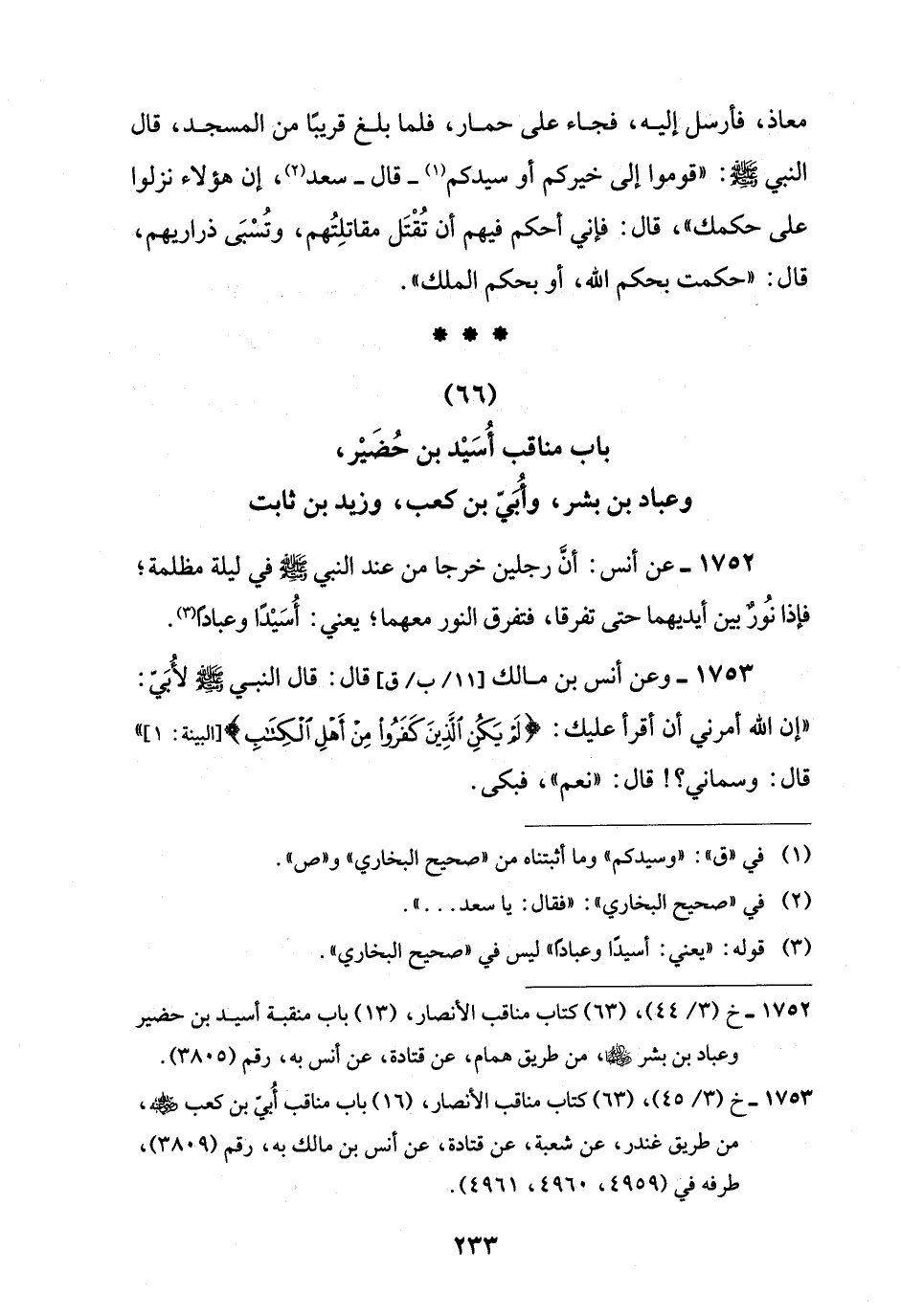 (66) باب مناقب أُسَيْد بن حُضَيْر، وعباد بن بشر، وأُبَيّ بن كعب، وزيد بن ثابت