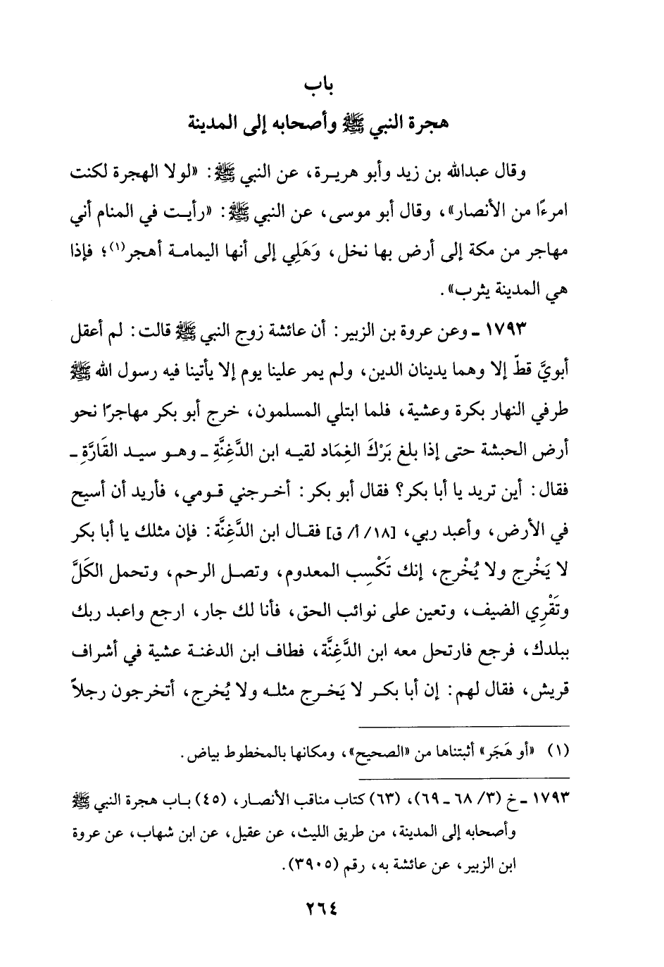 1793 - خ (3/ 68 - 69)، (63) كتاب مناقب الأنصار، (45) باب هجرة النبي -صلى اللَّه عليه وسلم- وأصحابه إلى المدينة، من طريق الليث، عن عقيل، عن ابن شهاب، عن عروة ابن الزبير، عن عائشة به، رقم (3905).
