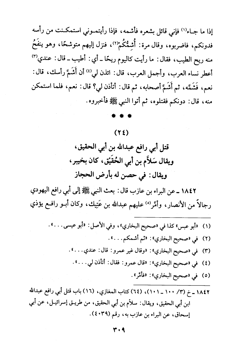 1842 - خ (3/ 100 - 101)، (64) كتاب المغازي، (16) باب قتل أبي رافع عبد اللَّه ابن أبي الحقيق، ويقال: سلام بن أبي الحقيق، من طريق إسرائيل، عن أبي إسحاق، عن البراء بن عازب به، رقم (4039).